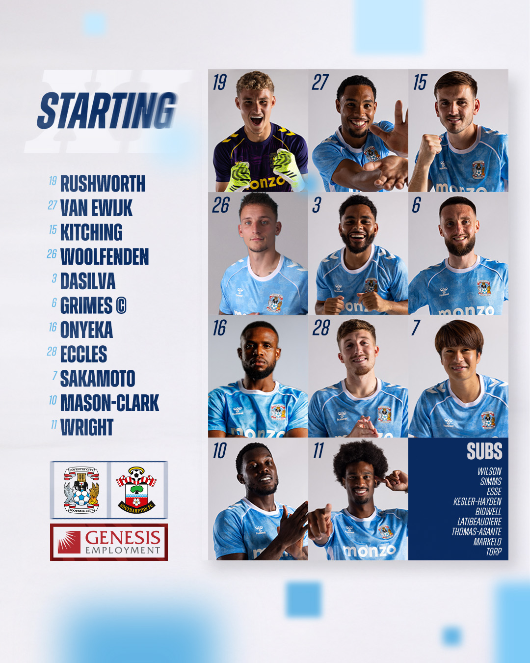 코번트리가 14일 오후 9시 30분(한국시간) 영국 코번트리에 있는 리코 아레나에서 열리는 사우샘프턴과의 2025-2026시즌 챔피언십(2부) 38라운드 홈 경기에 나설 선발 명단을 발표했다.