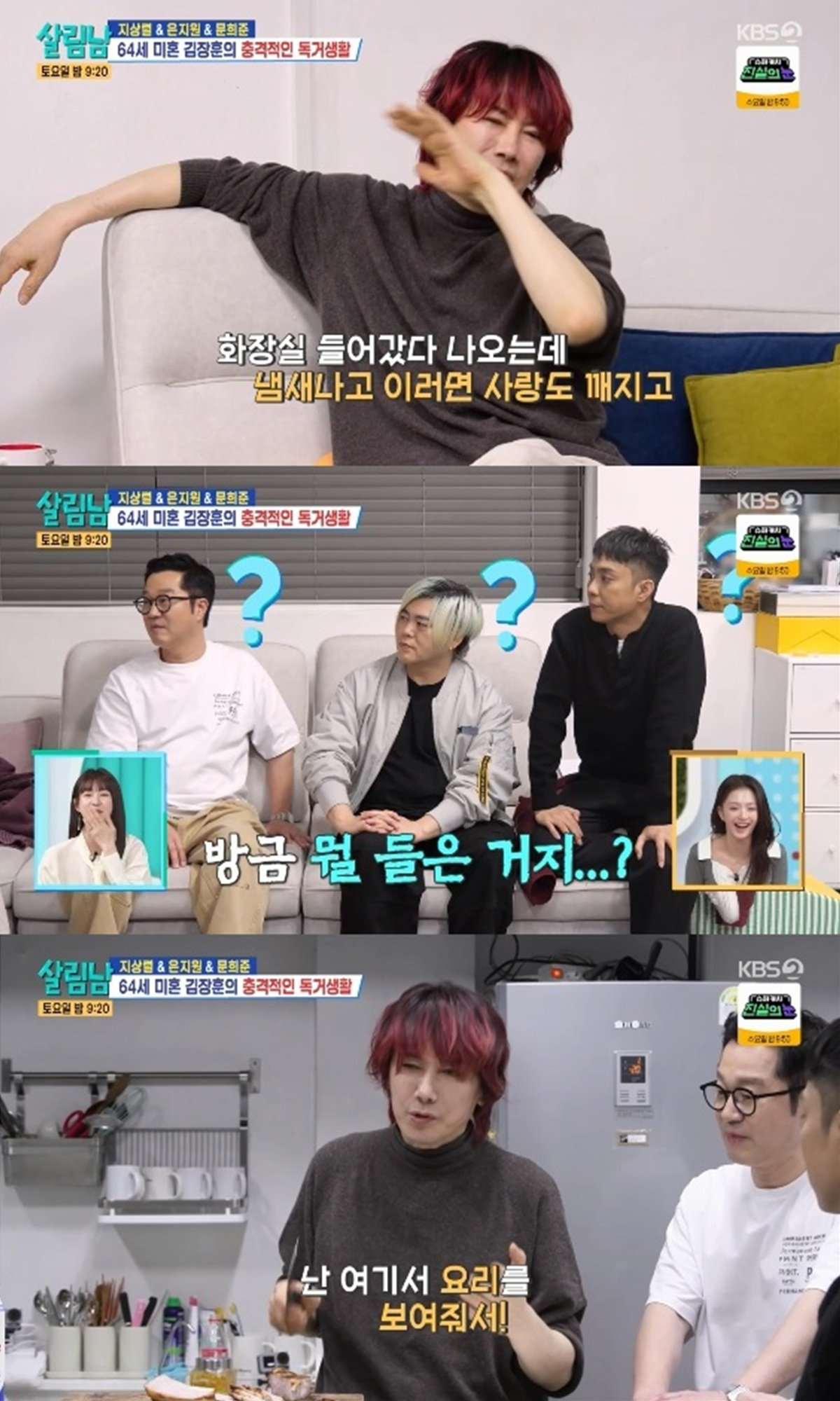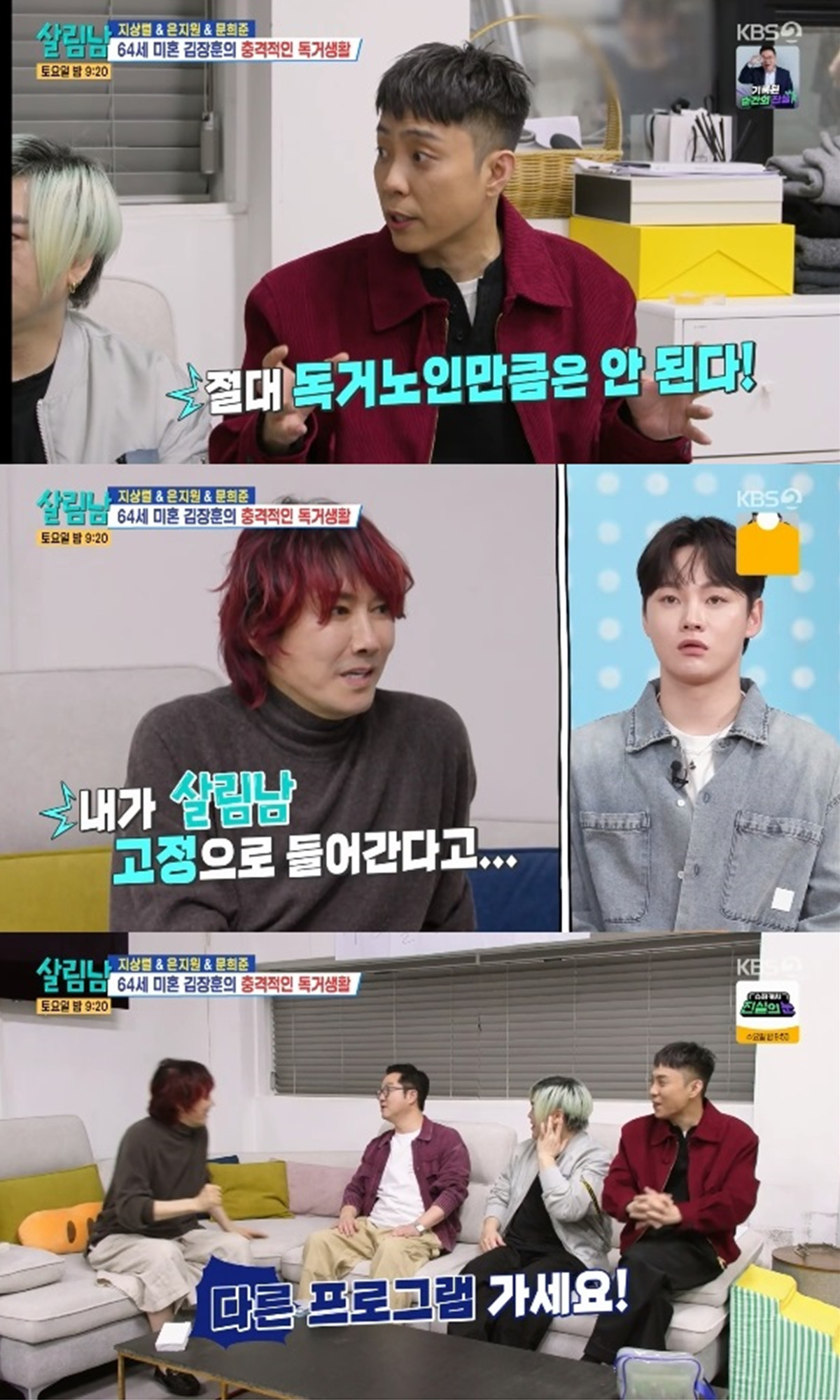 14일 방송된 KBS 2TV '살림하는 남자들 시즌2'에서는 은지원과 문희준이 김장훈을 찾아가는 모습이 전파를 탔다.