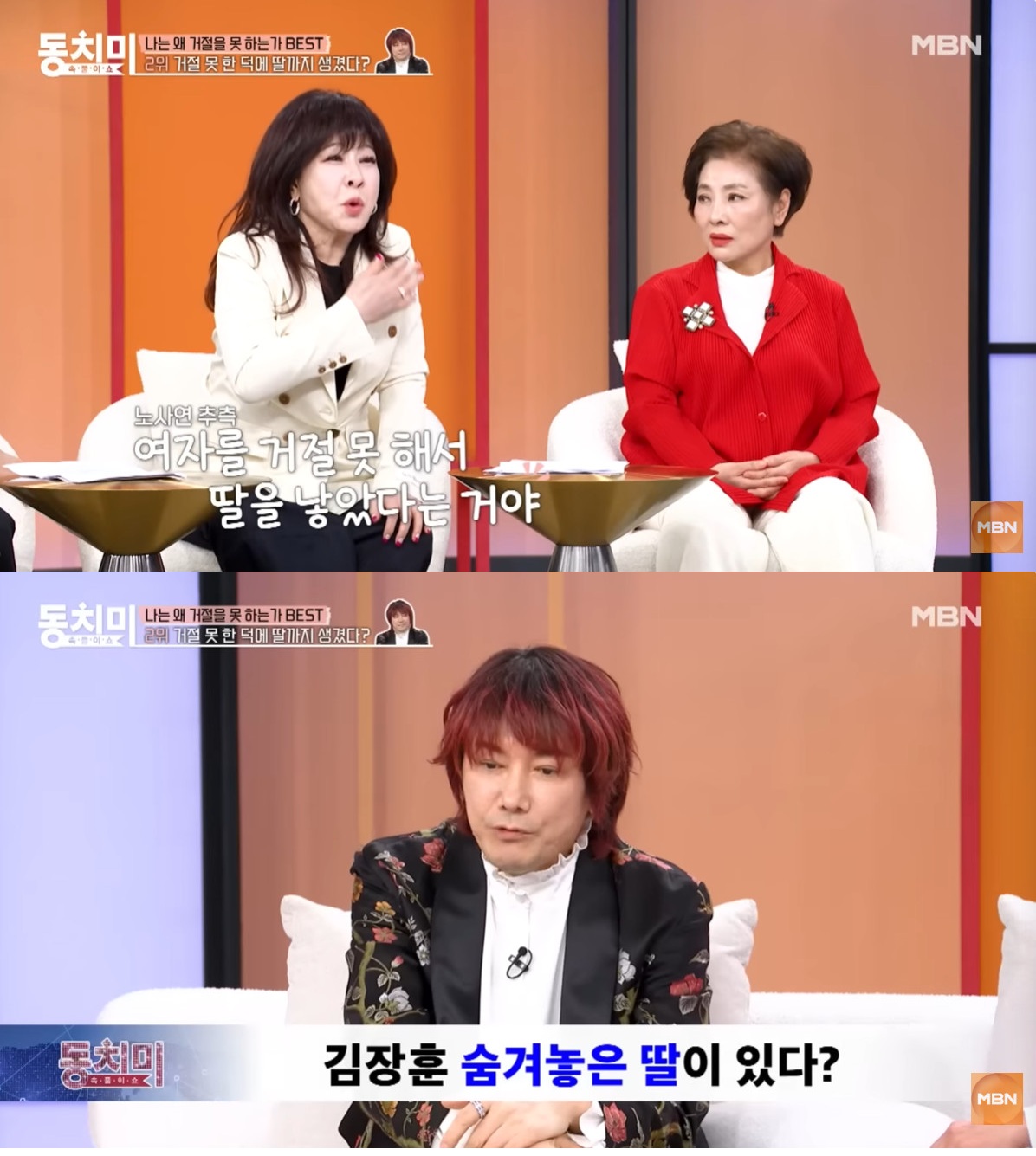 노사연은 깜짝 놀라 "딸이 있어? 여자를 거절 못해서 딸을 낳았다는 거냐"고 재차 물었다. 이에 김장훈은 자신의 기사 중 '숨겨둔 딸이 있다'는 제목이 있었다고 운을 뗐다.