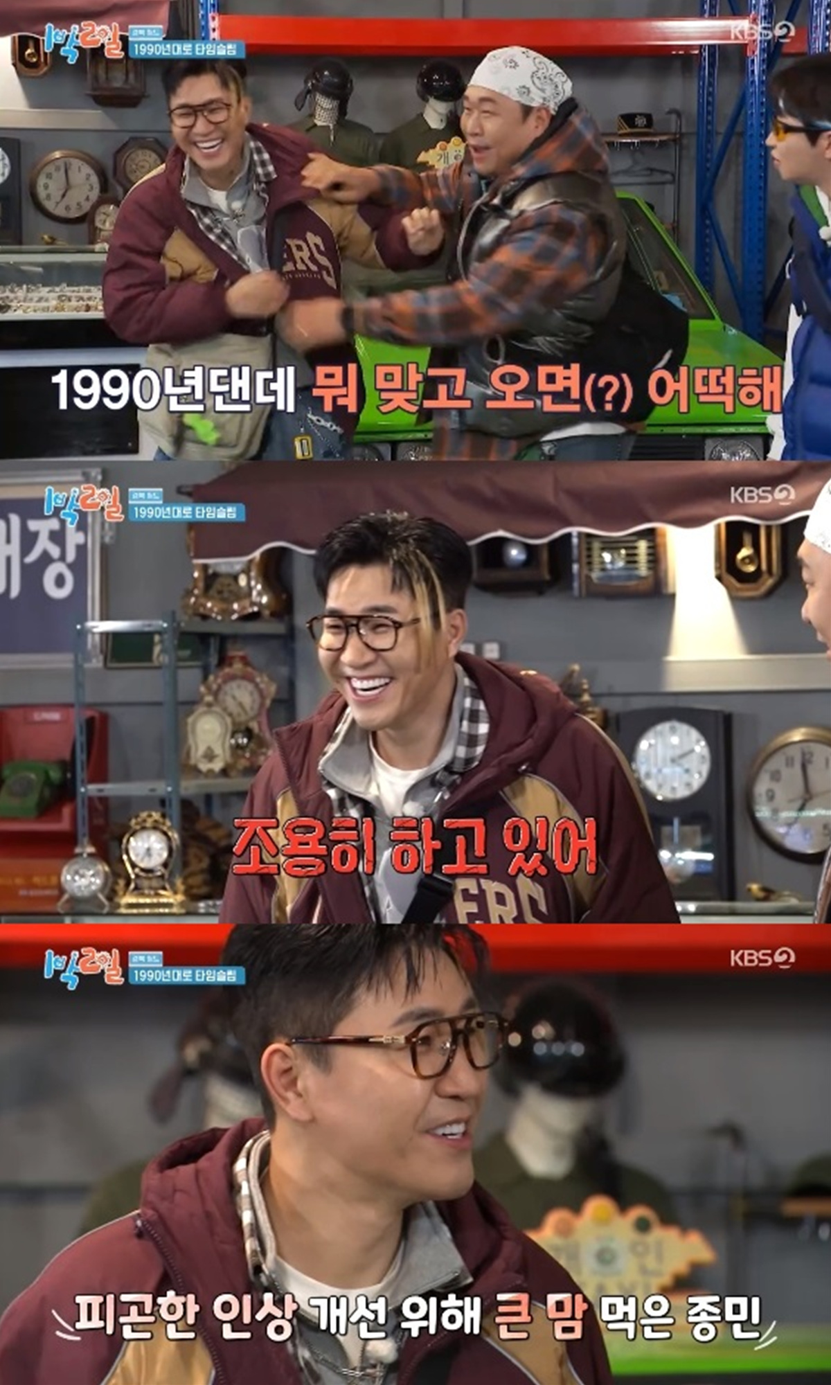 문세윤은 촬영 콘셉트가 90년대인 상황인 것을 이용해 "90년대인데 뭘 맞고 오면 어떻게 해"라고 말했다.