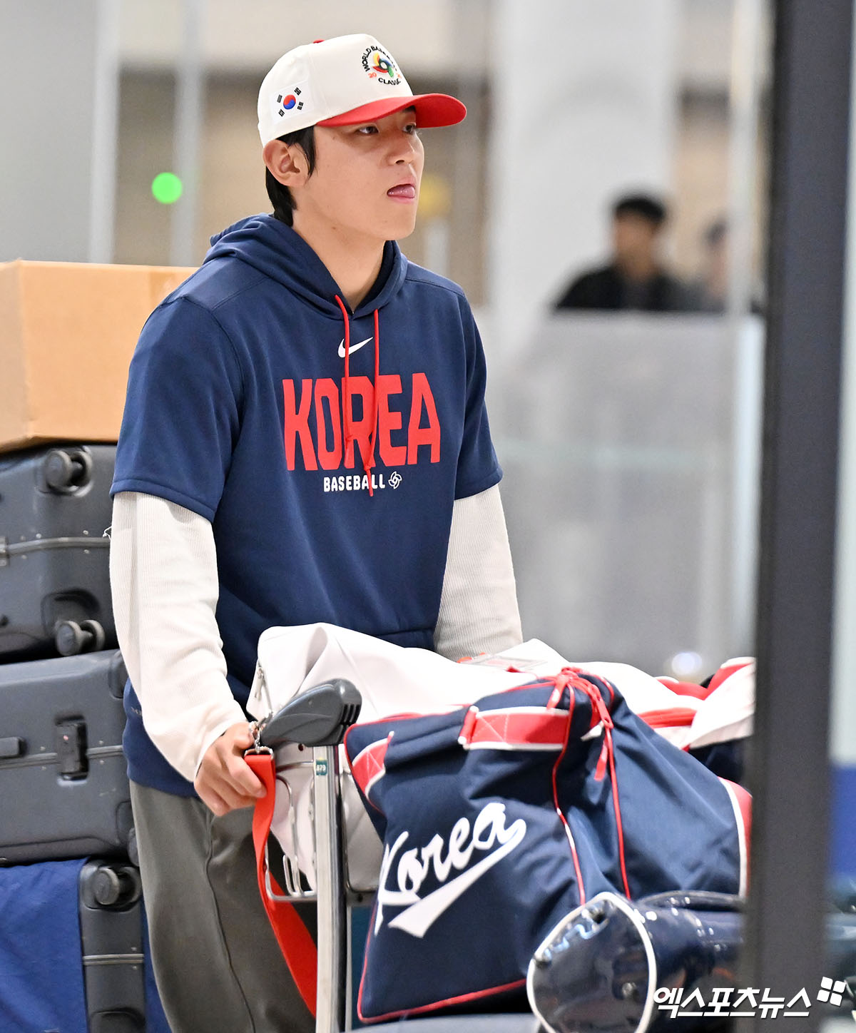 입국장을 빠져나오는 야구 대표팀 김도영.