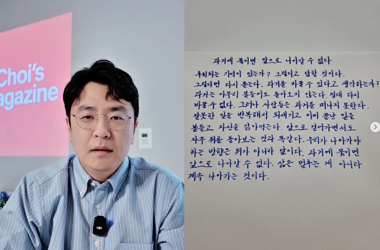 '과거에 묶이면 앞으로 나아갈 수 없다. 후회되는 기억이 있는가? 그렇다고 답할 것이다. 그렇다면 다시 묻는다. 과거를 바꿀 수 있다고 생각하는가? 과거는 아무리 붙들어도 돌아오지 않는다. 절대 다시 바꿀 수 없다', '그러나 사람들은 과거를 떠나지 못한다. 잘못한 일을 반복해서 되새기고 이미 끝난 일을 붙들고 자신을 갉아먹는다. 앞으로 걸어가면서도 자꾸 뒤를 돌아보는 것과 똑같다. 우리가 나아가야 하는 방향은 뒤가 아니라 앞이다. 과거에 묶이면 앞으로 나아갈 수 없다. 삶은 멈추는 게 아니라 계속 나아가는 것이다'라는 문장을 공유하면서 의미심장함을 자아냈다.