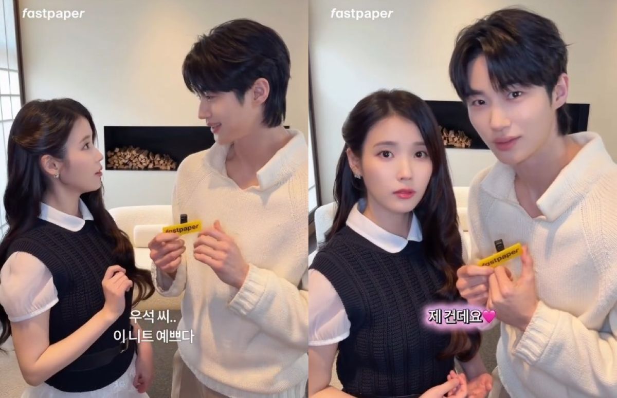 아이유가 먼저 "우석 씨, 이 니트 예쁘다. 누구 거예요?"라고 묻자 변우석은 "제 건데요"라고 답했다.