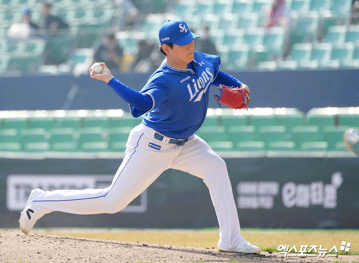 (엑스포츠뉴스 인천, 고아라 기자) 17일 오후 인천SSG랜더스필드에서 열린 ‘2026 신한 SOL KBO리그’ 삼성 라이온즈와 SSG 랜더스의 시범경기, 6회말 삼성 양현이 공을 힘차게 던지고 있다.