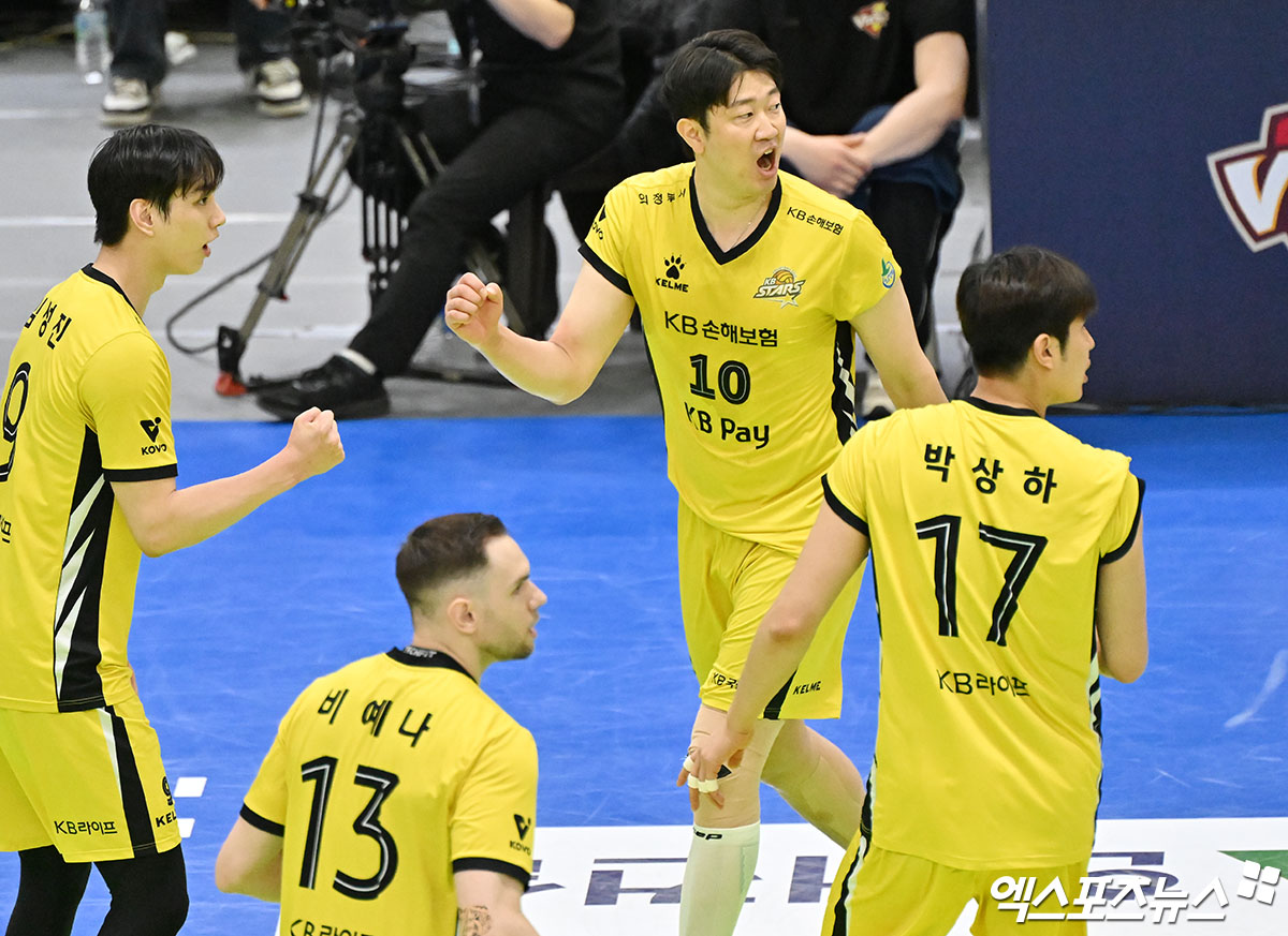 (엑스포츠뉴스 수원, 김한준 기자) 18일 오후 경기도 수원실내체육관에서 열린 '진에어 2025-2026 V-리그' 한국전력과 KB손해보험의 경기, KB손해보험 나경복이 공격을 시도하고 있다.