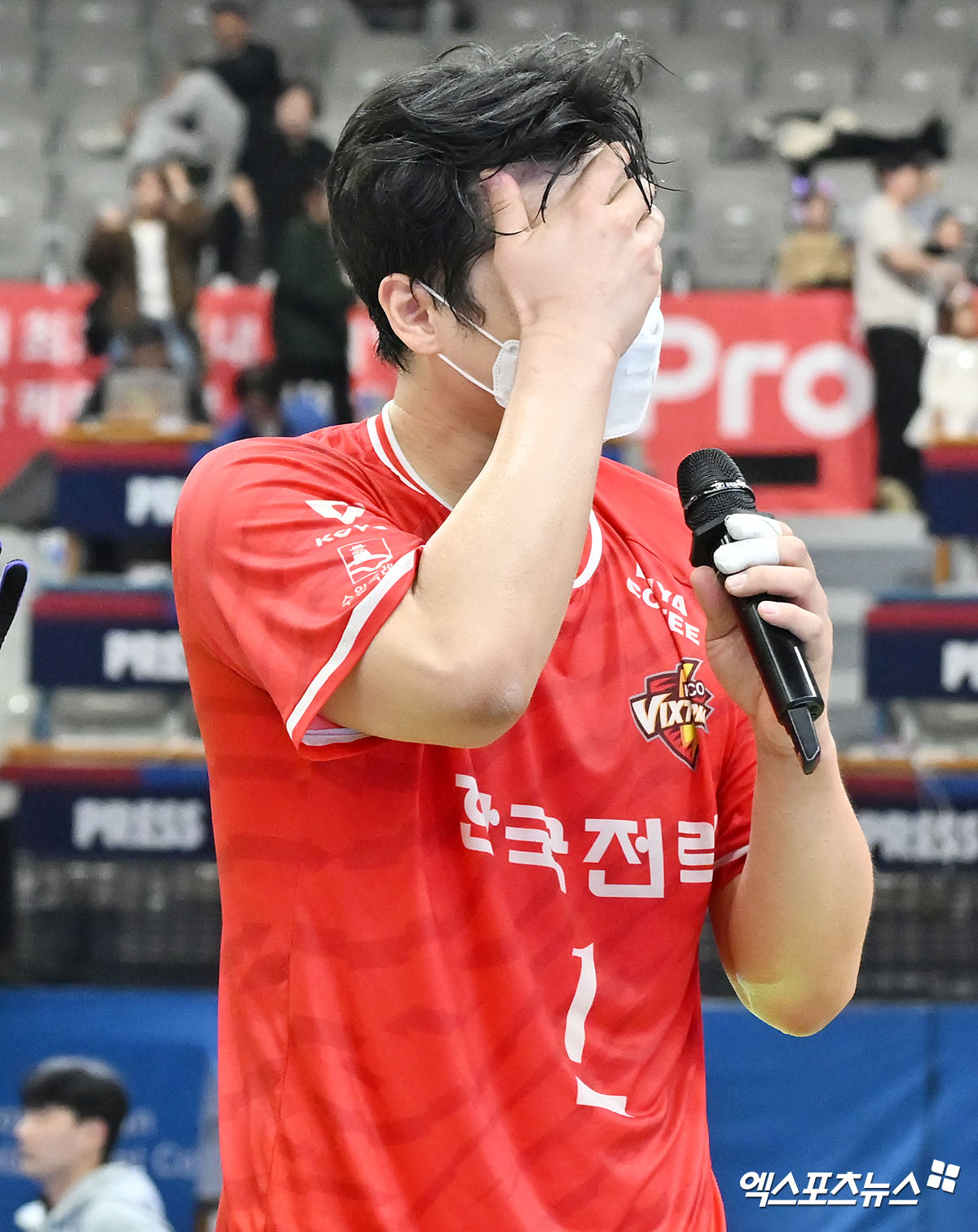 한국전력 서재덕이 눈물을 흘리고 있다.