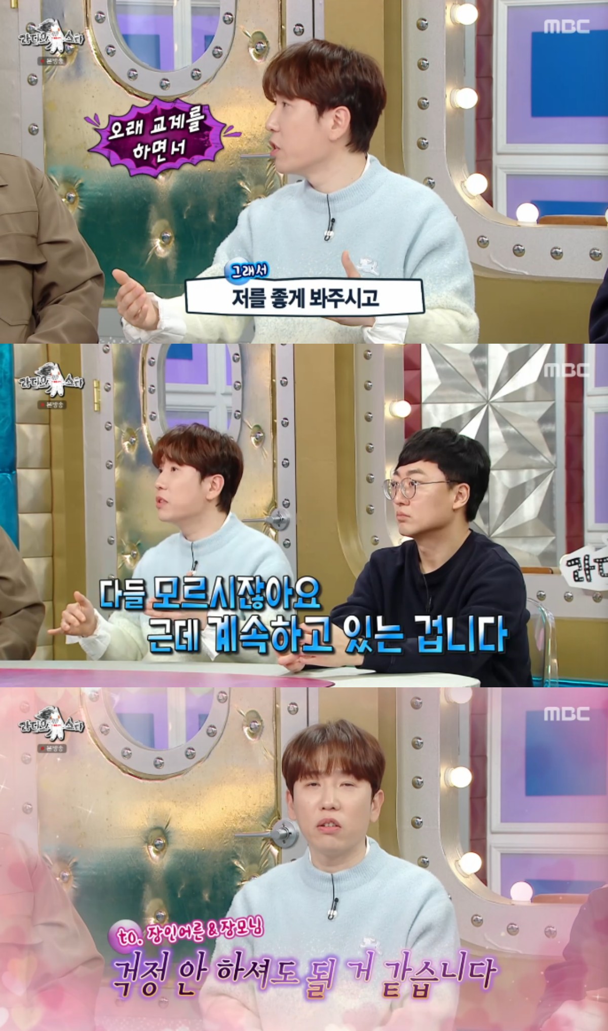 남창희는 "제가 쉬지않고 활동을 했다. 다들 잘 모르시지만 꺼지지 않고, 꾸준하게 열심히 활동 중"이라면서 장인어른과 장모님을 향해 "걱정 안하셔도 된다"고 말하며 웃었다.