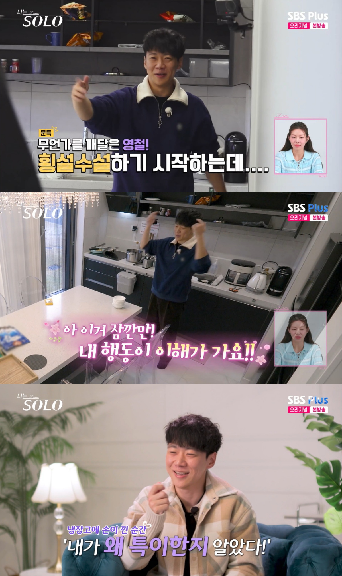 이후 영철은 상철이 와서 위로해 준 상황이 기억나냐는 제작진의 물음에 "기억이 안 난다"며 "온전한 내 시간이었다. 언제 이런 걸 겪어보겠나. 진짜 큰 각오하고 왔다. 저는 오순도순 가정 이루고 평범한 사람이고 싶었는데.. 이제 나 특이한 거 인정할 것 같다"고 동문서답을 했다.
