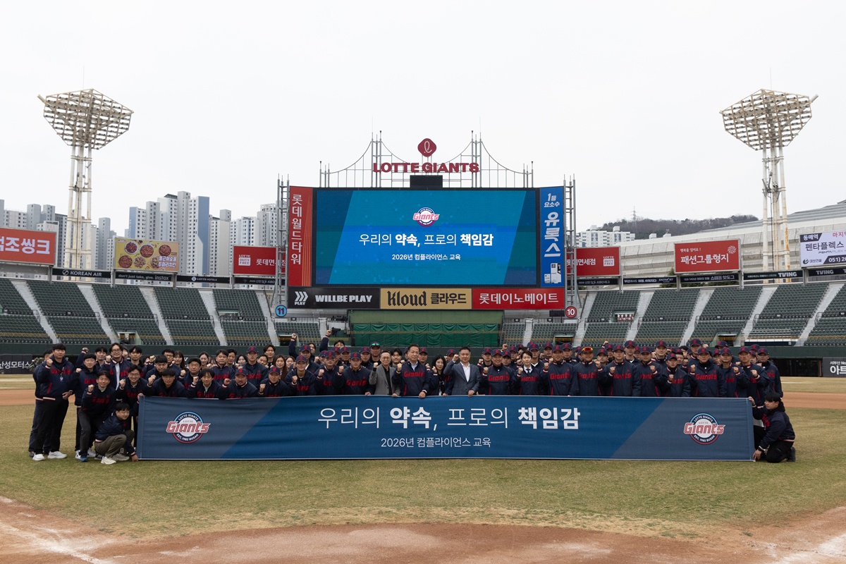 롯데 구단은 지난 16일 부산 사직야구장에서 열린 키움 히어로즈와 2026 신한 SOL Bank KBO 시범경기 종료 후 컴플라이언스 교육을 진행했다.
