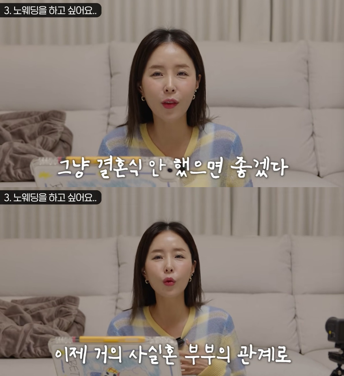 신지는 "진짜 결혼식 안 했으면 좋겠다고 생각했다. 이미 우린 같이 살고 있고 많은 분들이 거의 사실혼 관계라고 생각하시지 않나"고 솔직히 밝혔다.