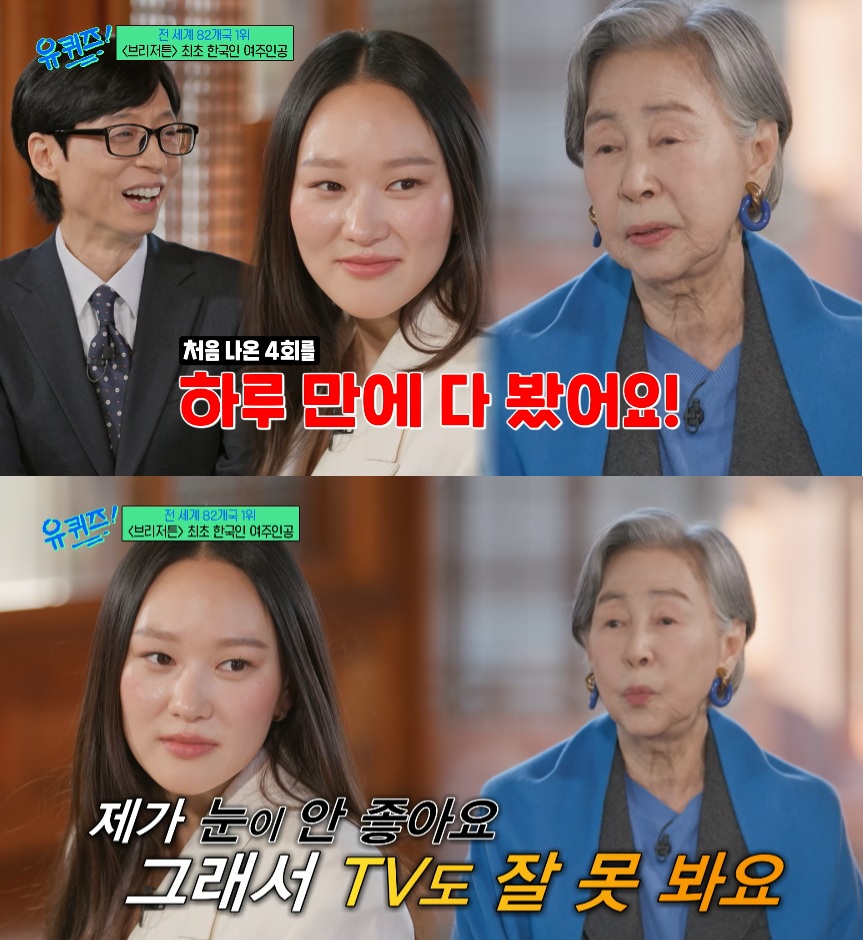 외조모인 손숙 또한 함께 '유퀴즈'에 출연해 손녀가 연기한 '브리저튼4' 시청 소감을 전했다.