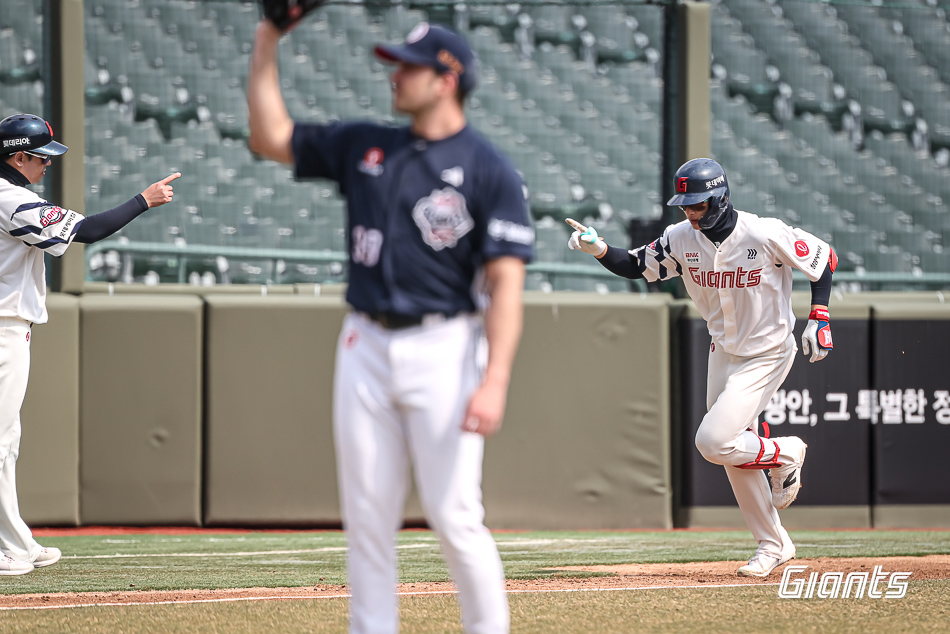 손성빈과 이서준이 연속 삼진으로 아웃되면서 2아웃이 됐지만, 이번에는 한태양의 적시타와 손호영의 우중간 2루타로 2점을 더 추가했다.