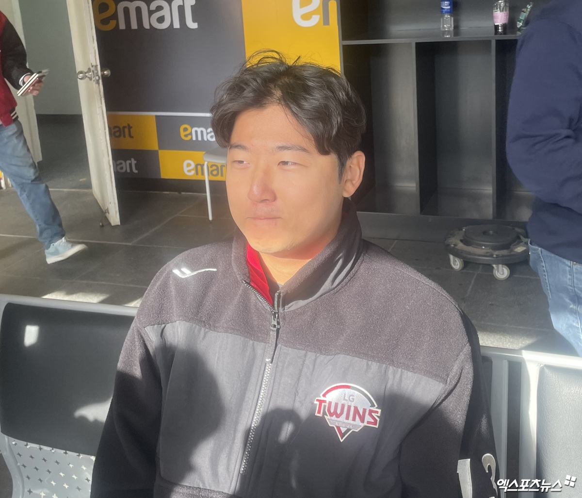 LG 트윈스 송승기가 19일 인천 SSG랜더스필드에서 열린 2026 KBO 시범경기 SSG 랜더스전 이후 취재진과 인터뷰에 응하고 있다. 인천, 김유민 기자
