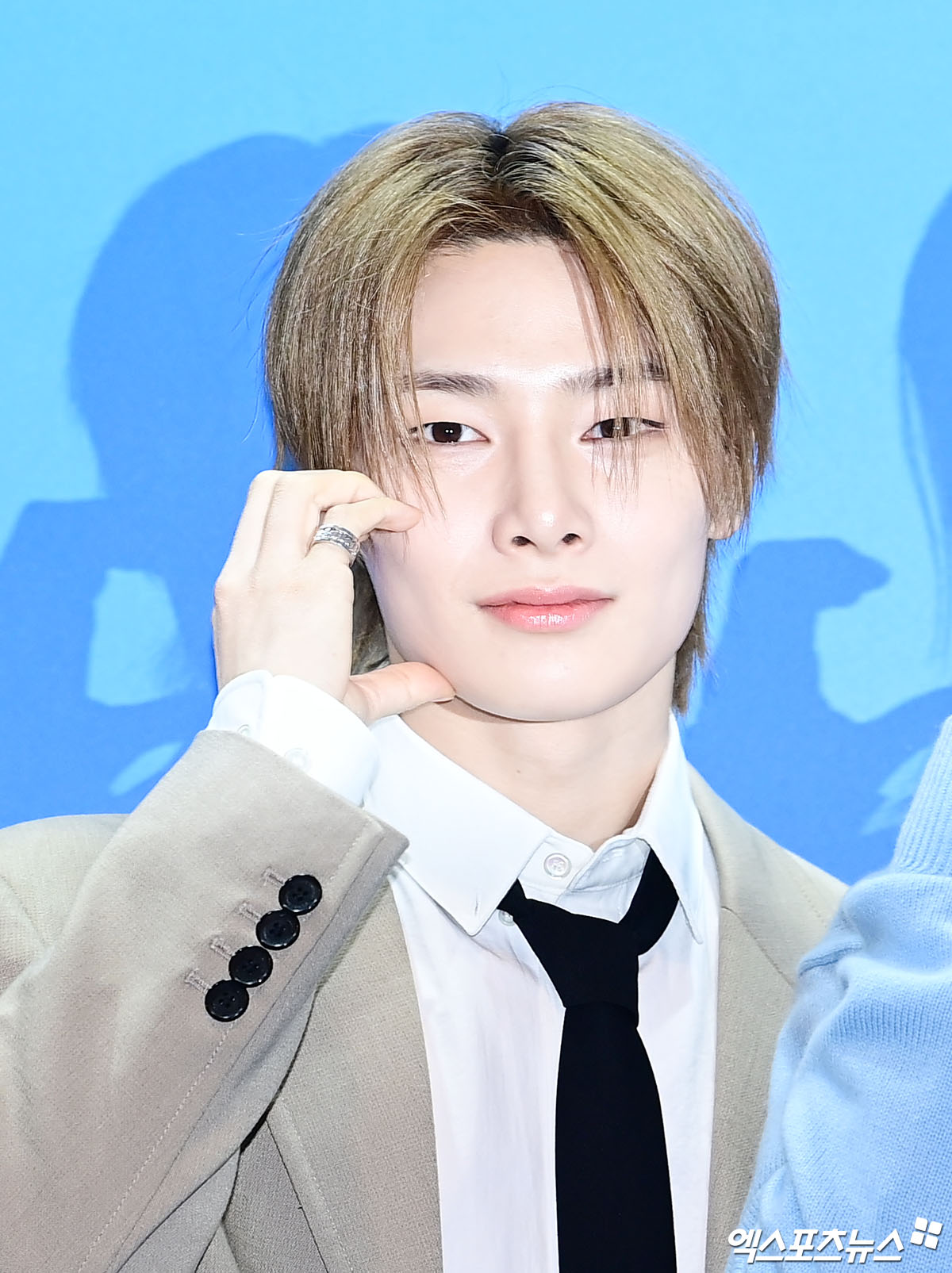 이날 행사에 참석한 그룹 스트레이키즈 아이엔이 포토타임을 갖고 있다.