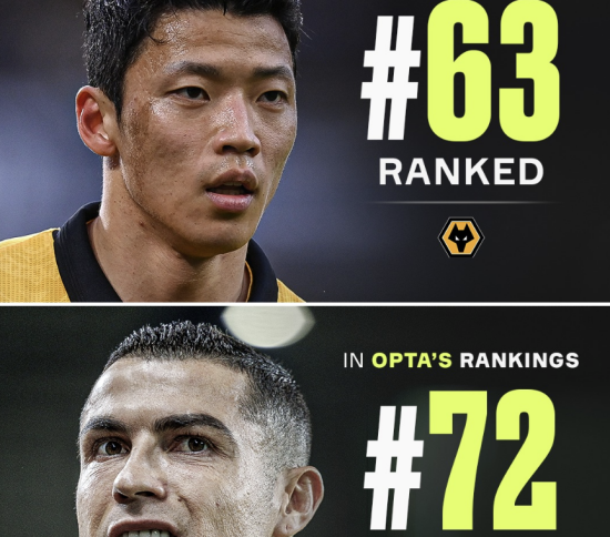 공개된 수치만 놓고 보면 황희찬이 뛰고 있는 울버햄프턴이 호날두 소속팀보다 9계단 높다.