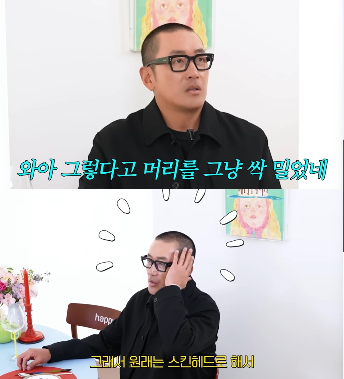 "다음 작품 때문이다"라고 많은 추측을 불러일으킨 삭발의 이유를 밝힌 하정우에 최화정은 "그렇다고 머리를 그냥 싹 밀었네"라고 또 한 번 감탄했다.