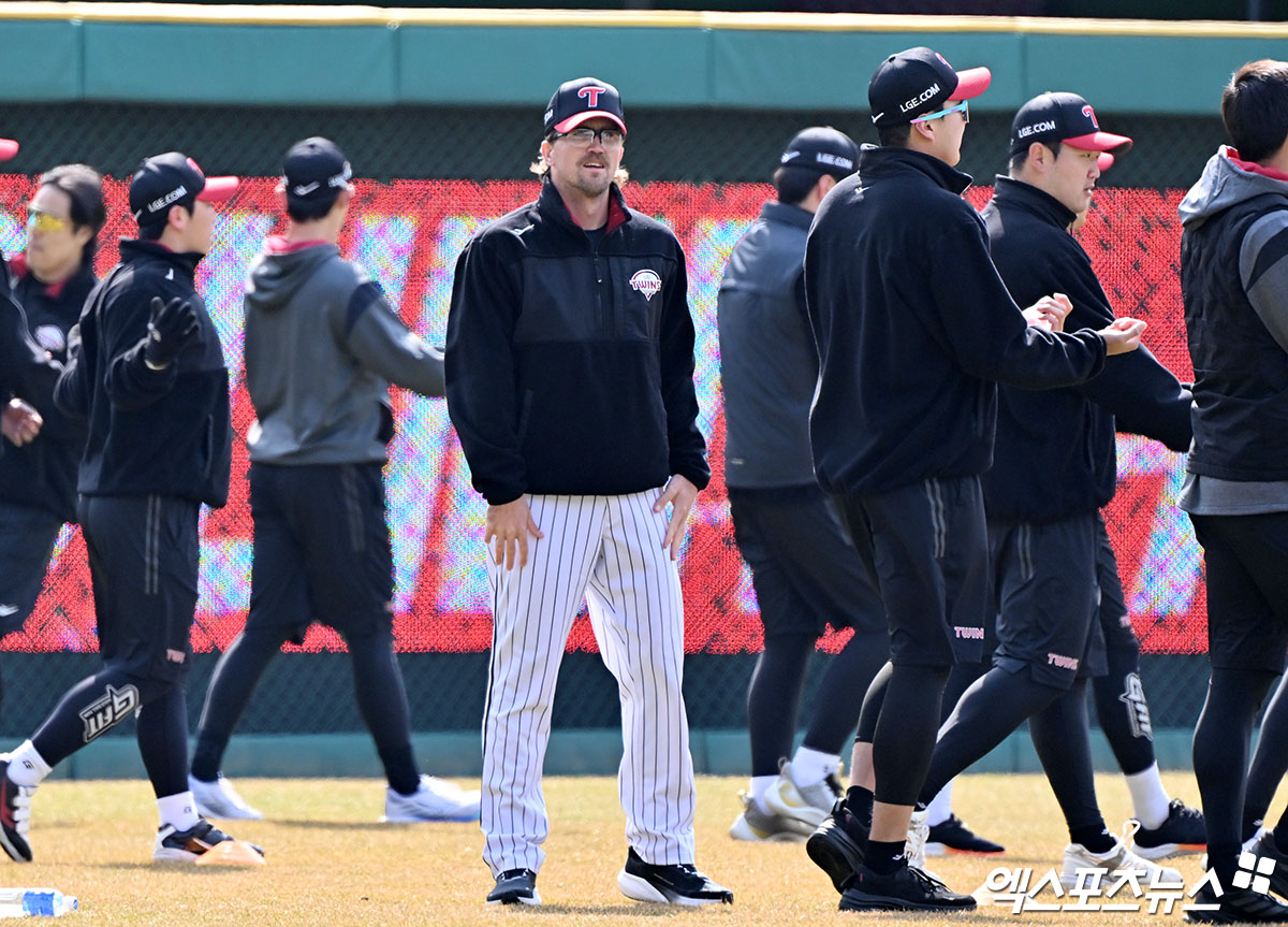 (엑스포츠뉴스 인천, 김한준 기자) 20일 오후 인천SSG랜더스필드에서 열리는 '2026 신한 SOL Bank KBO리그' LG 트윈스와 SSG 랜더스의 시범경기, LG 라클란 웰스가 훈련에 임하고 있다.