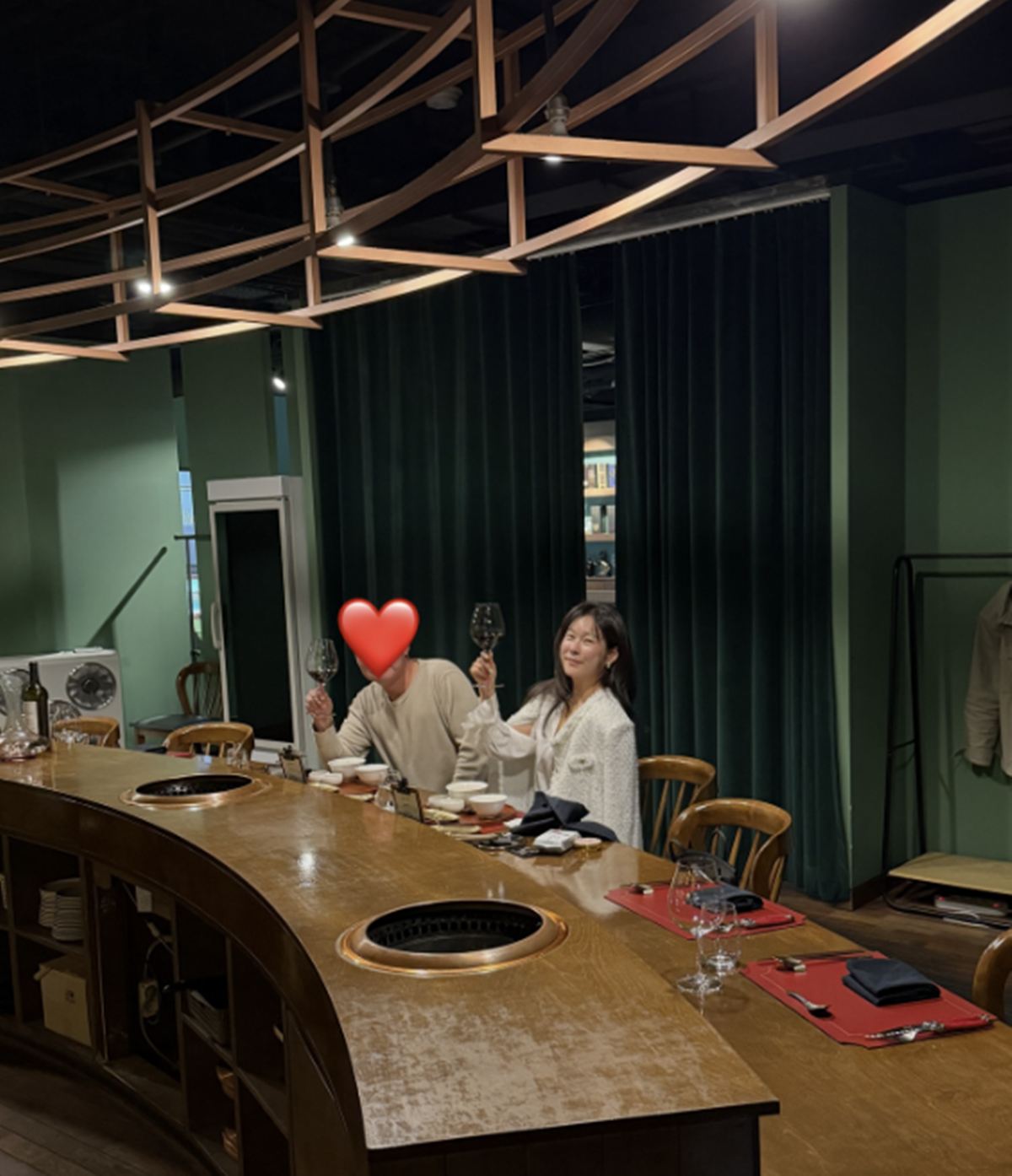 공개된 사진 속 현영은 남편과 함께 레스토랑에서 시간을 보내고 있는 모습. 남편 얼굴은 스티커로 가렸으나, 듬직한 피지컬이 시선을 사로잡는다. 행복이 넘치는 현영의 표정 역시 눈길을 끈다.