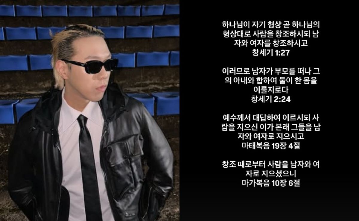 독실한 개신교인으로 알려진 비와이는 이어 성경 내용을 공유했다. '하나님이 자기 형상 곧 하나님의 형상대로 사람을 창조하시되 남자와 여자를 창조하시고' 등의 창세기 말씀이 포함됐다.