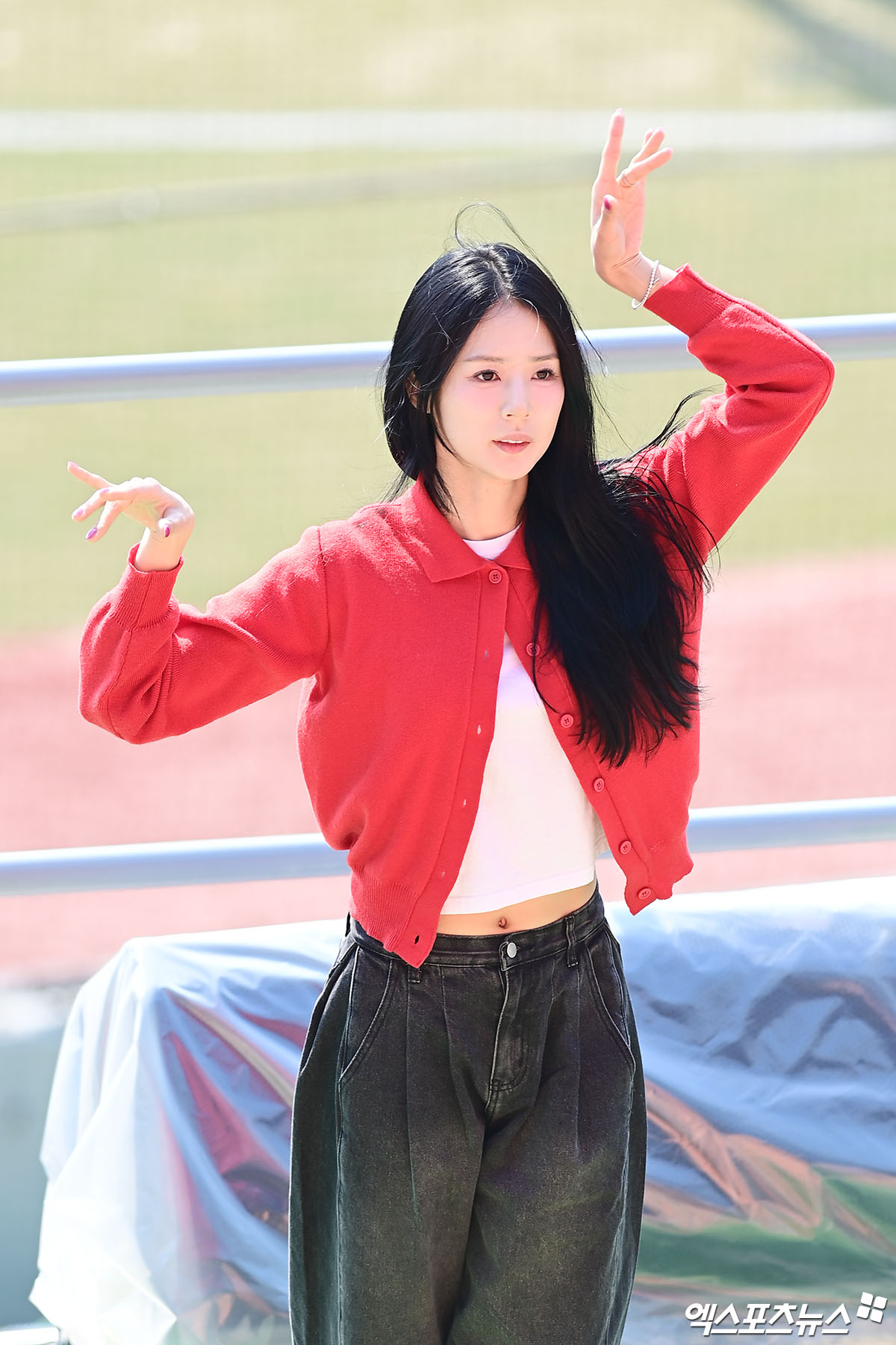 (엑스포츠뉴스 잠실, 박지영 기자) 21일 오후 서울 송파구 잠실야구장에서 열리는 '2026 신한 SOL Bank KBO리그 시범경기' KIA 타이거즈와 두산 베어스의 경기에 앞서 두산 치어리더 박기량이 리허설을 하고 있다.