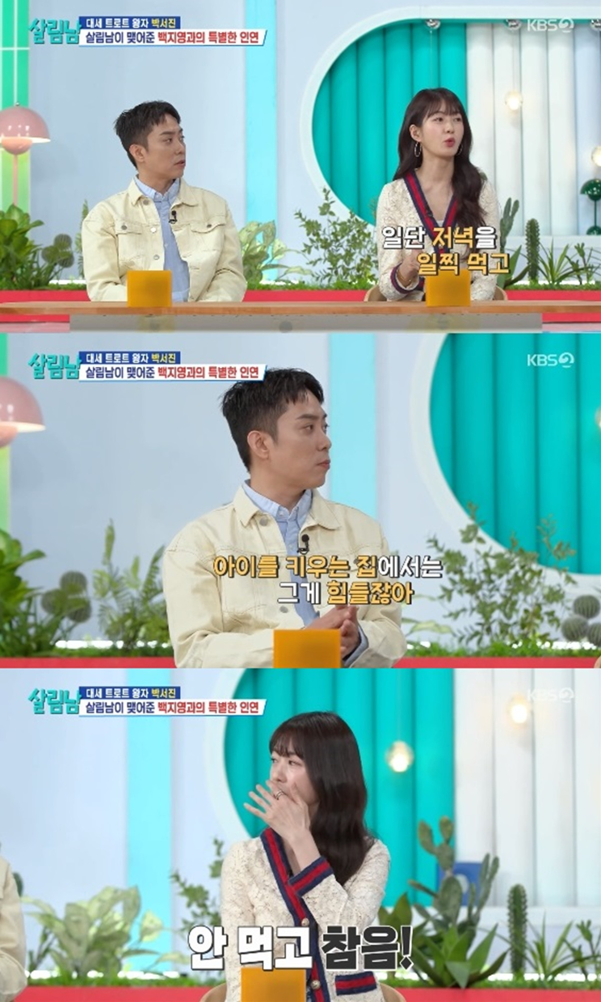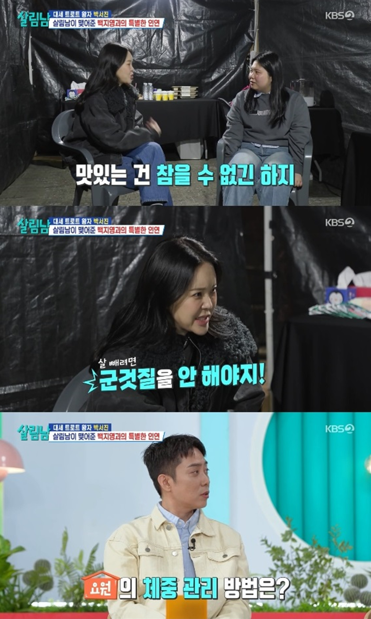 이날 백지영은 박서진 여동생 박효정과 함께 다이어트에 대한 얘기를 나눴다.
