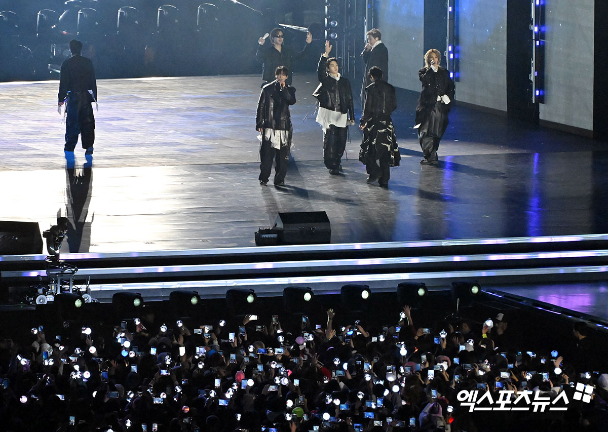 이날 'BTS 컴백 라이브: ARIRANG'에 참석한 방탄소년단(BTS)이 멋진 공연을 선보이고 있다.