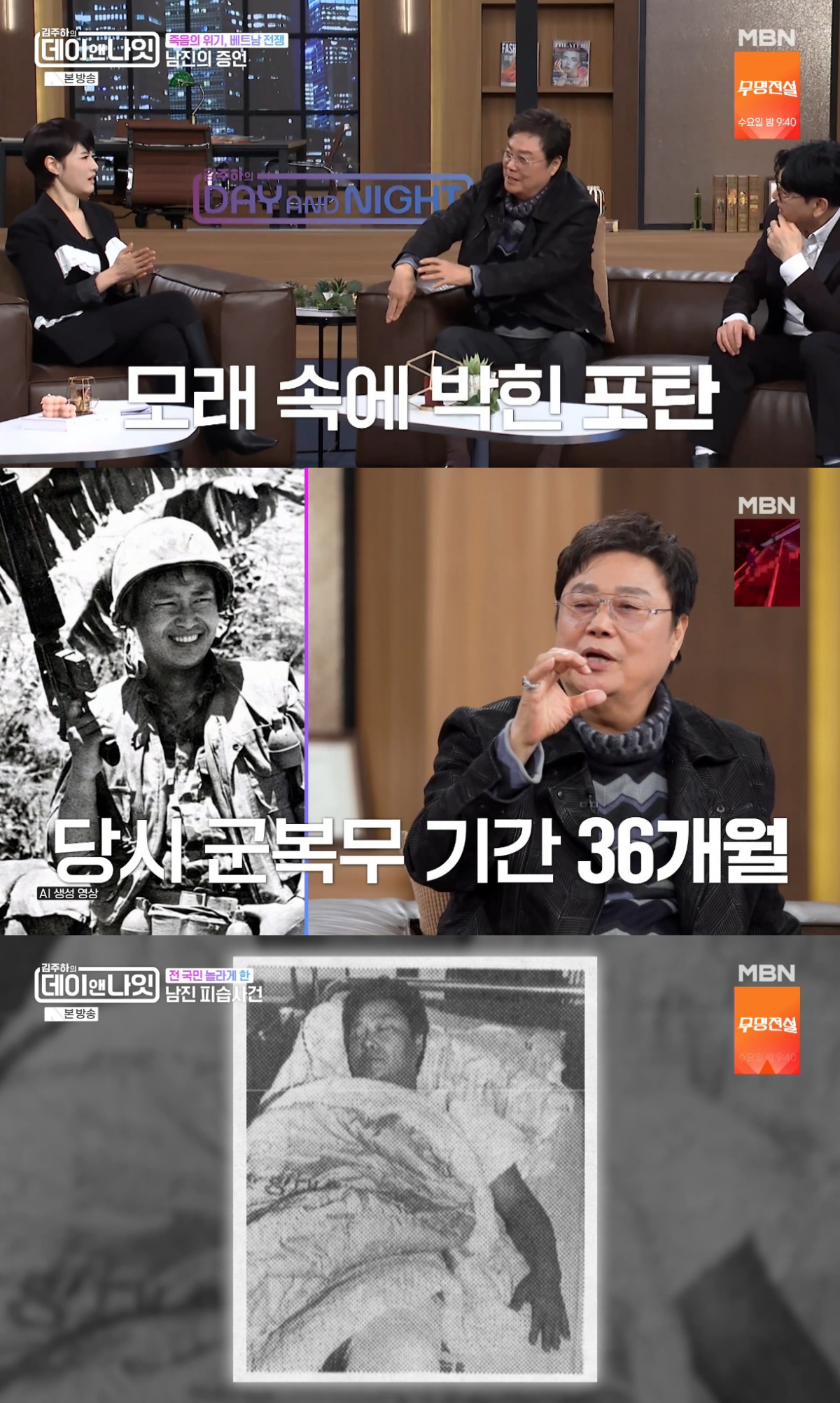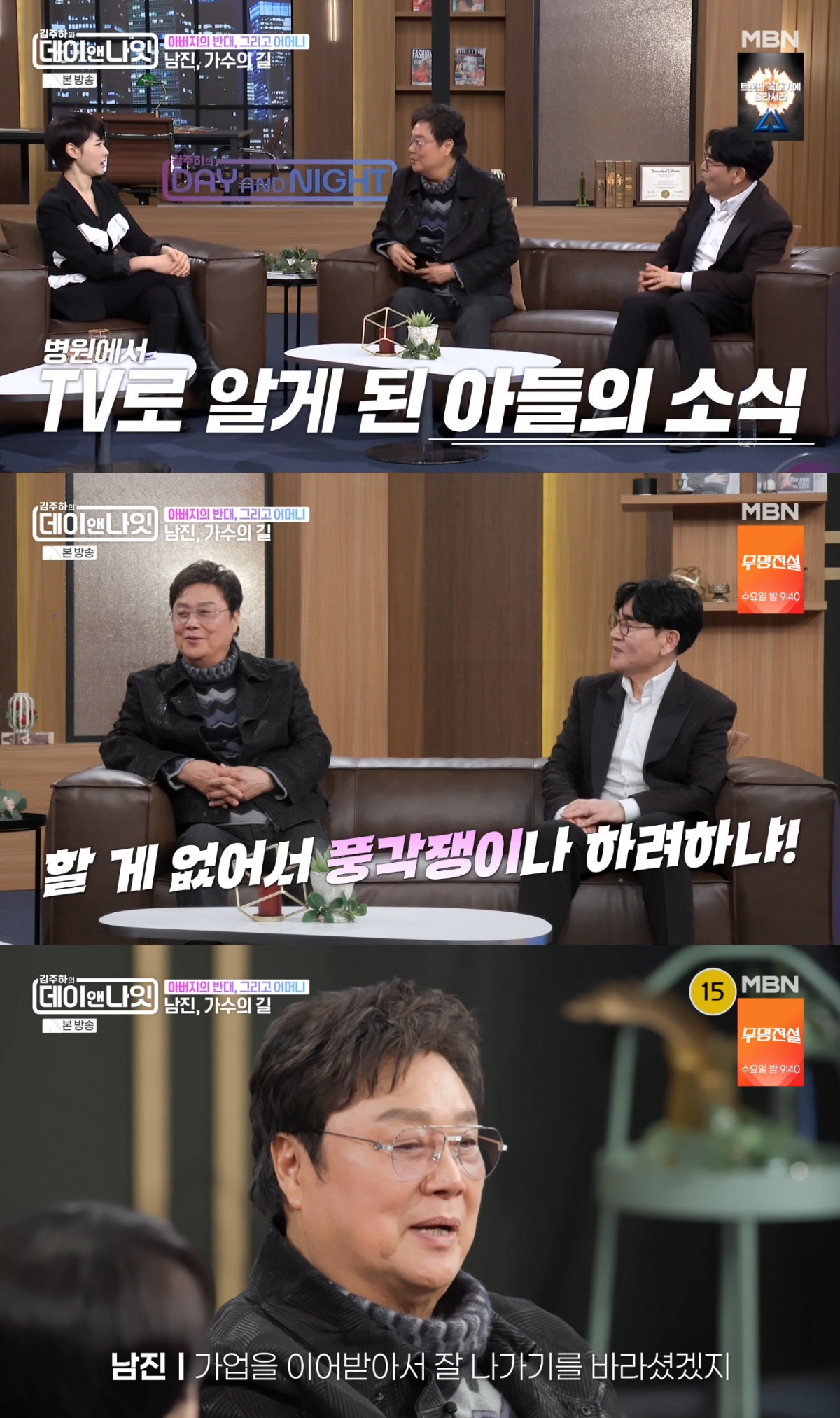 21일 방송된 MBN '김주하의 데이앤나잇'(이하 '데이앤나잇')에서는 트로트 가수 남진과 조항조가 게스트로 출연했다.