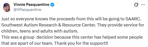 무엇보다 이번 경매가 더욱 주목받는 이유는 '의미'에 있다. 단순한 기념품 판매가 아닌 자선 목적이기 때문이다. 보도에 따르면 경매 수익금은 자폐 스펙트럼 장애를 지원하는 기관인 '사우스웨스트 자폐 연구 및 자원 센터(SARRC)'에 전액 기부될 예정이다.