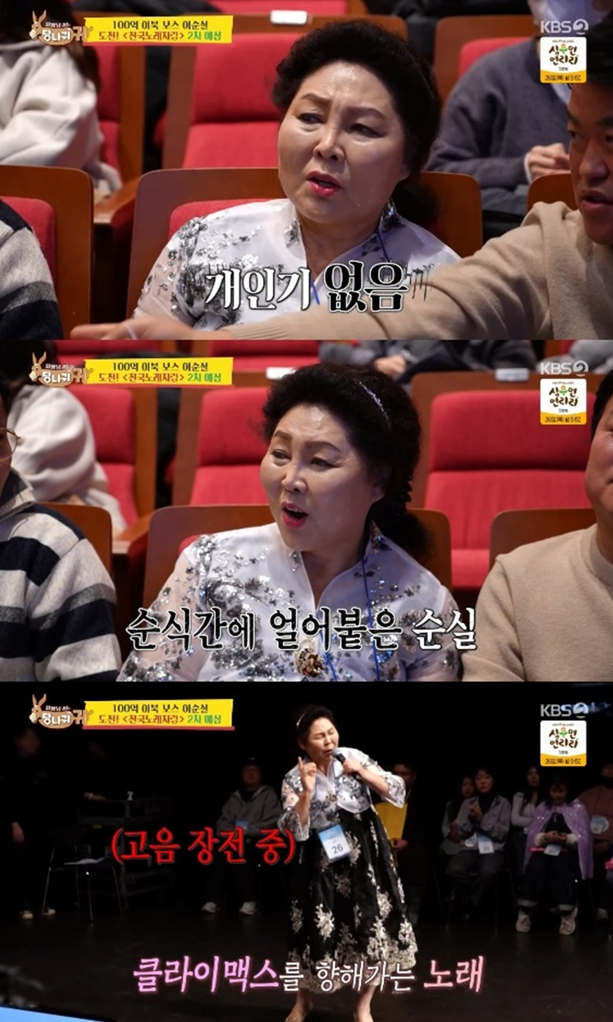 이날 이순실은 '전국노래자랑' 1차 예심을 통과한 뒤 2차 예심을 준비했다.