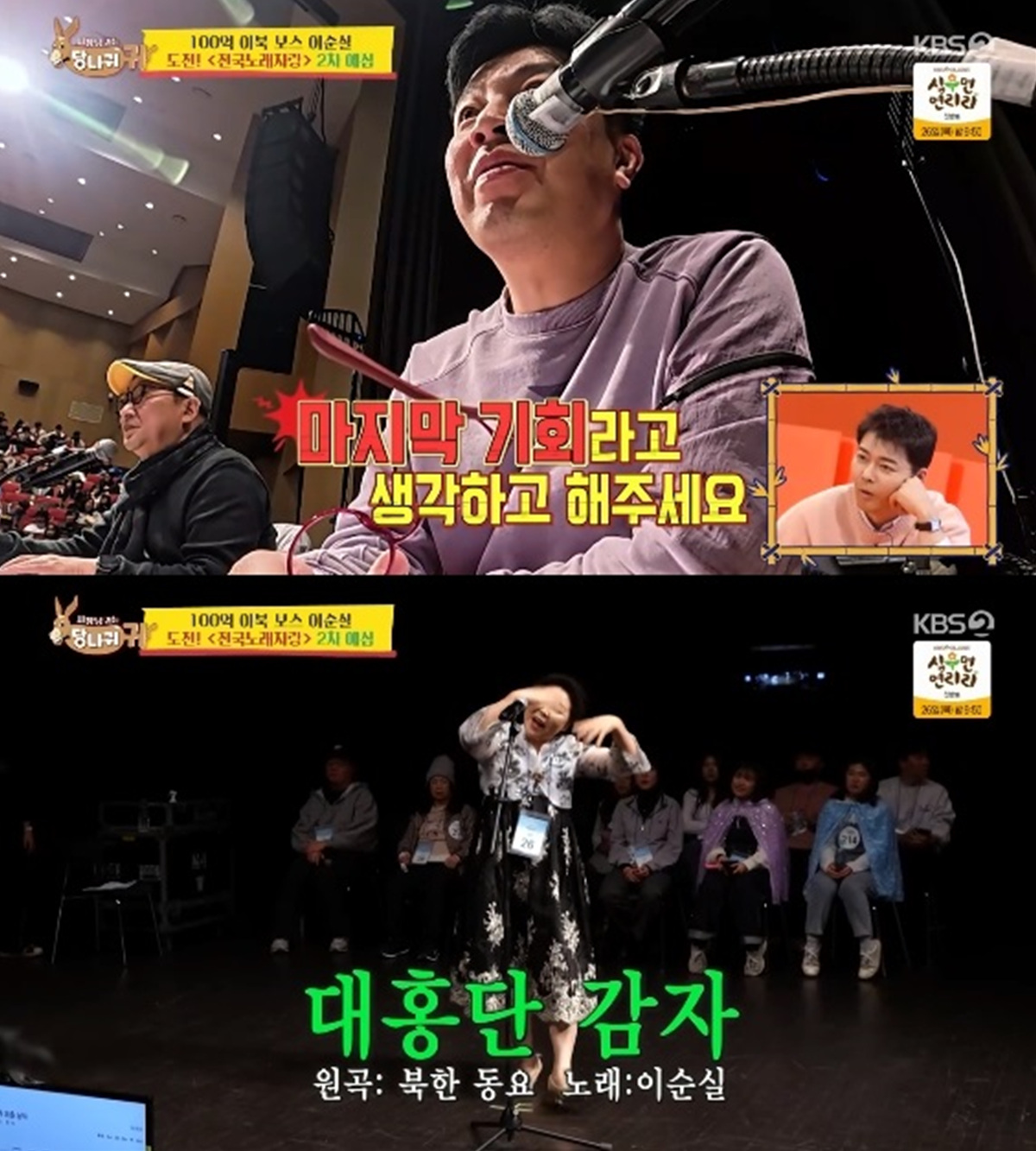 22일 방송된 KBS 2TV '사장님 귀는 당나귀 귀'에서는 이순실이 '전국노래자랑' 예심에 참여하는 모습이 전파를 탔다.