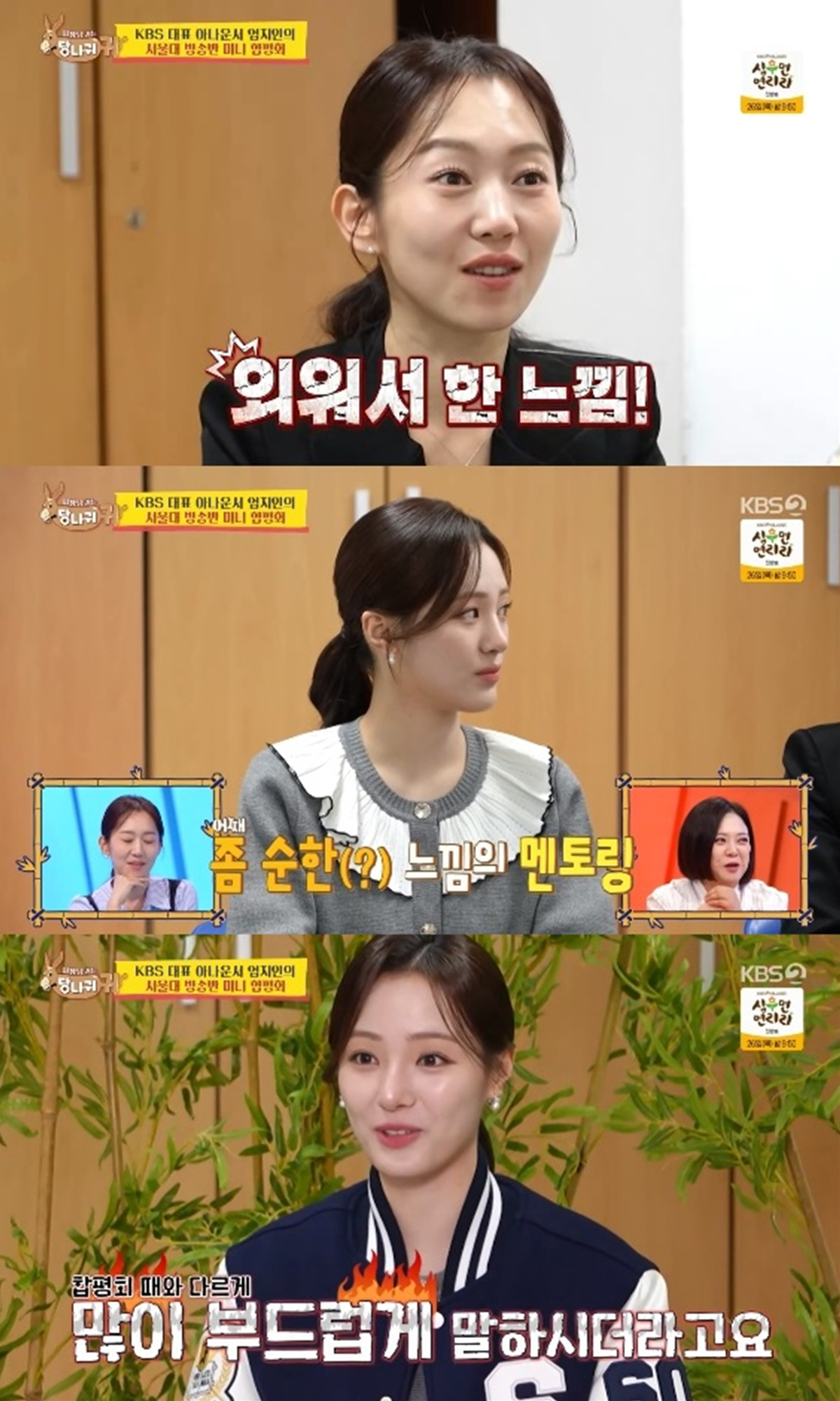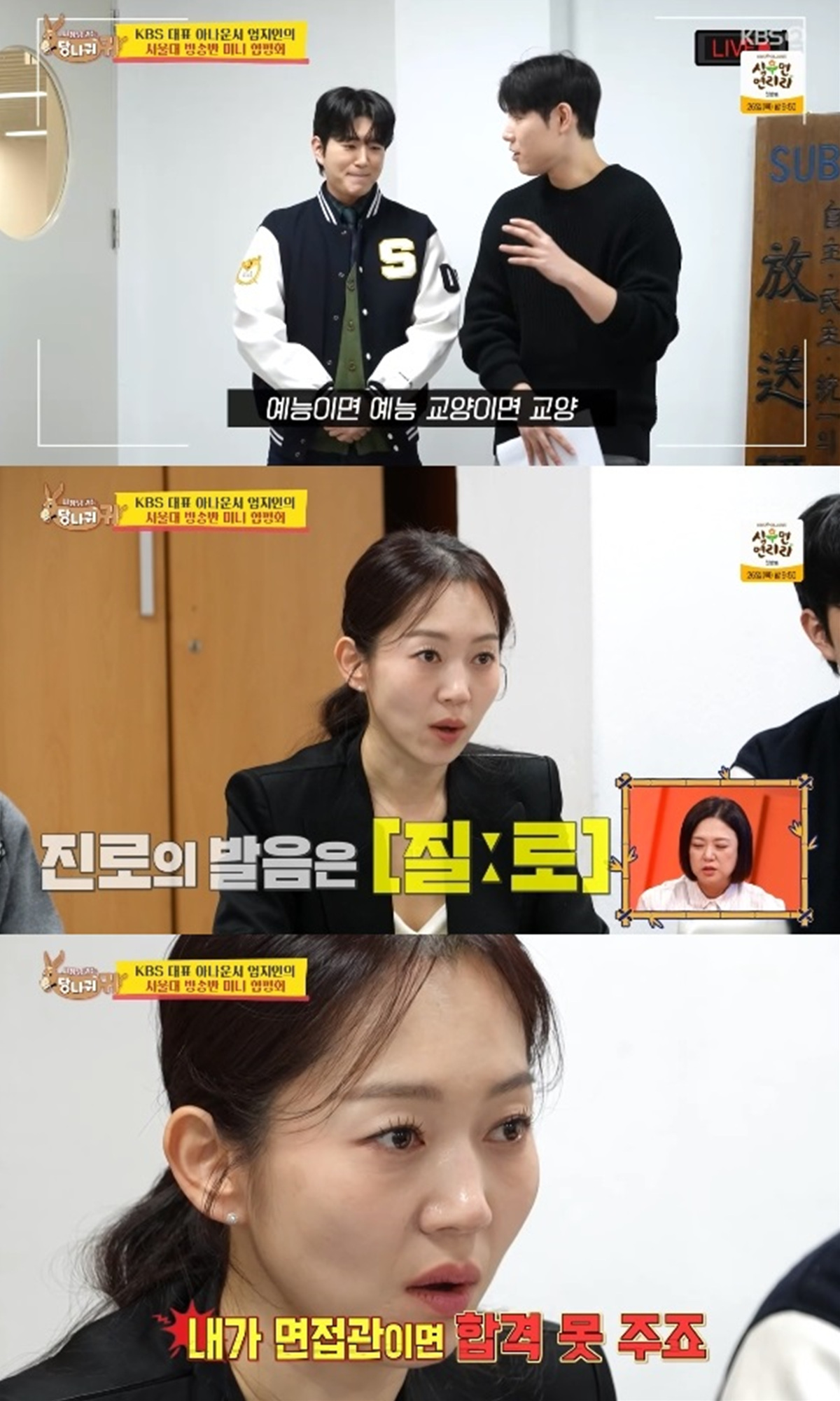 22일 방송된 KBS 2TV '사장님 귀는 당나귀 귀'에서는 엄지인이 아나운서 지망생들을 위한 합평회를 여는 모습이 전파를 탔다.