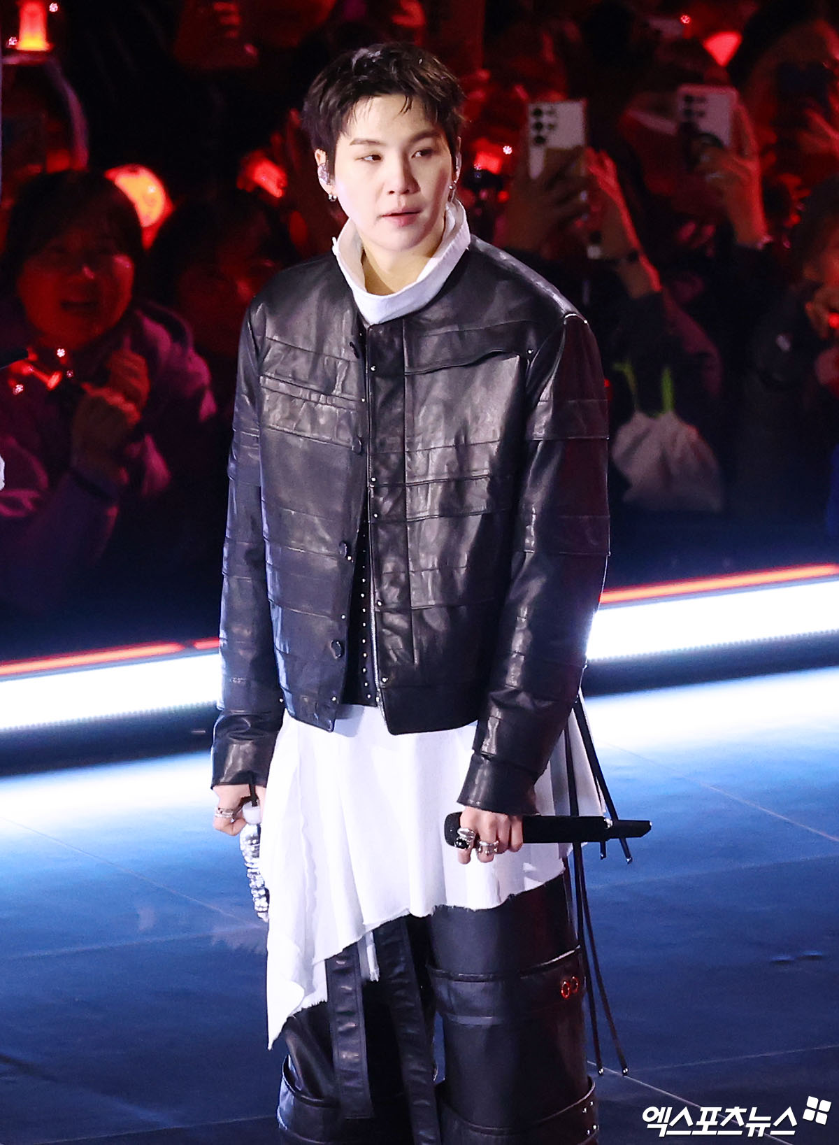 이날 'BTS 컴백 라이브: ARIRANG'에 참석한 방탄소년단(BTS) 슈가가 인사를 하고 있다.