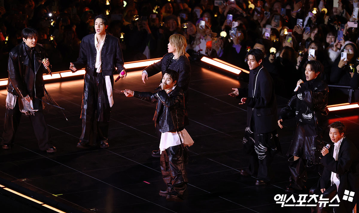 이날 'BTS 컴백 라이브: ARIRANG'에 참석한 방탄소년단(BTS)이 멋진 공연을 선보이고 있다.