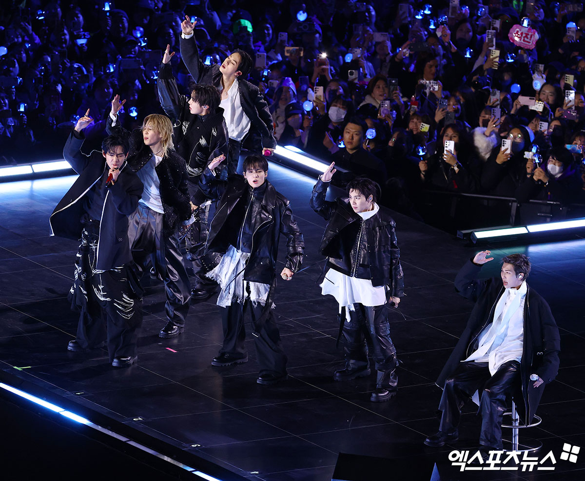 이날 'BTS 컴백 라이브: ARIRANG'에 참석한 방탄소년단(BTS)이 멋진 공연을 선보이고 있다.
