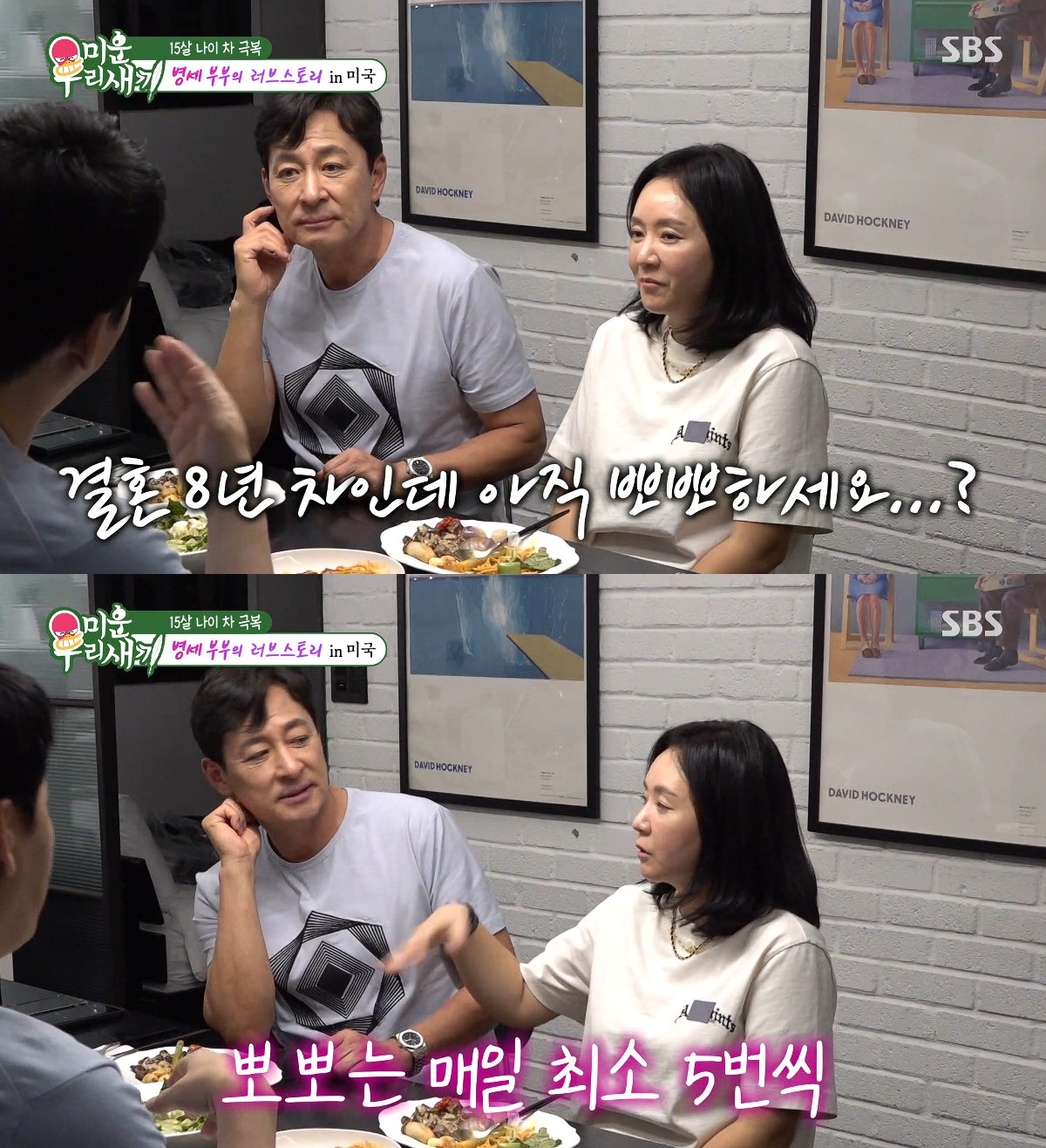 이어 김승수는 "결혼 8년 찬데 아직도 입 박치기를 하시냐"며 스킨십 근황을 궁금해했다. 김병세는 1초의 고민도 없이 "하지!"라고 말하며 결혼 8년 차에도 신혼부부 같은 사이임을 밝혔다.