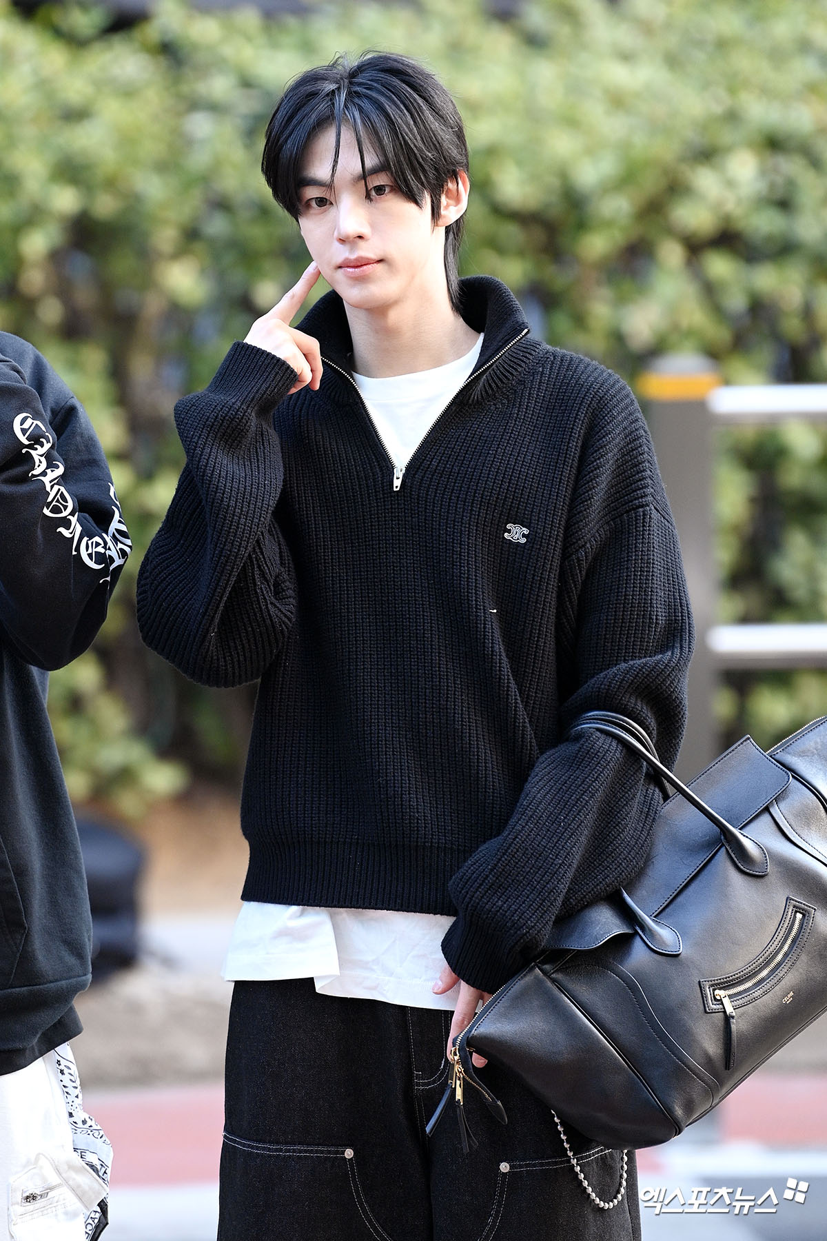 이날 녹화에 참석한 투어스 도훈이 출근길에 포즈를 취하고 있다.