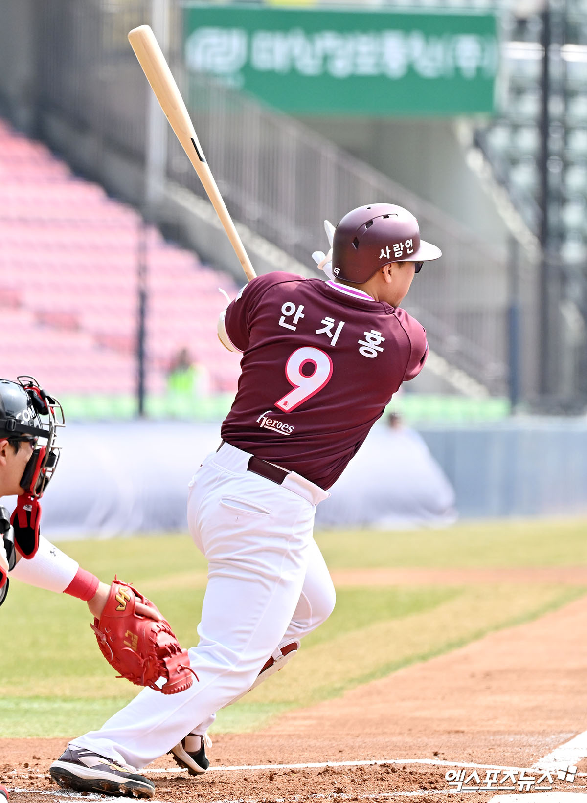 (엑스포츠뉴스 잠실, 김한준 기자) 23일 오후 서울 송파구 잠실야구장에서 열린 '2026 신한 SOL Bank KBO리그' 키움 히어로즈와 LG 트윈스의 시범경기, 3회초 2사 2루 키움 안치홍이 1타점 적시타를 날리고 있다.