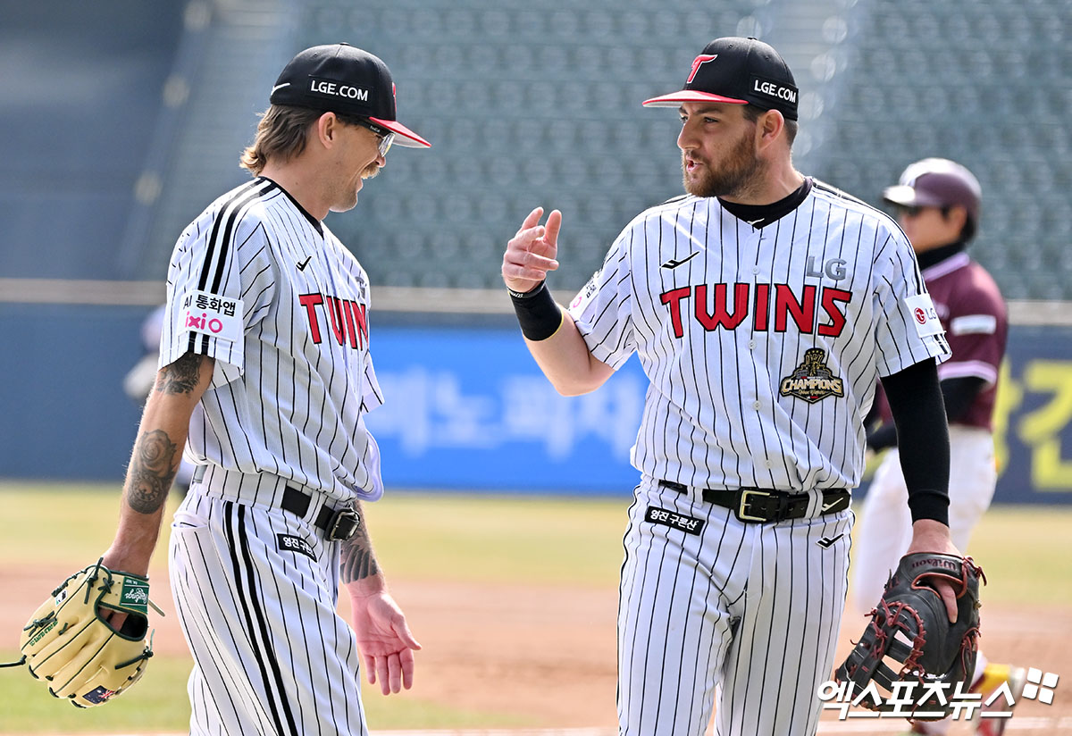 (엑스포츠뉴스 잠실, 김한준 기자) 23일 오후 서울 송파구 잠실야구장에서 열린 '2026 신한 SOL Bank KBO리그' 키움 히어로즈와 LG 트윈스의 시범경기, 3회초 수비를 마친 LG 웰스가 더그아웃으로 향하고 있다.