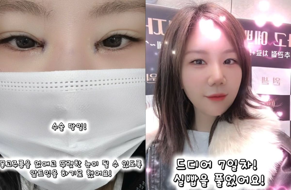 수술 3일차 부터는 멍도 거의 빠졌고, 7일차에 실밥을 풀자 일주일 만에 또렷한 눈매가 완성돼 놀라움을 자아냈다.