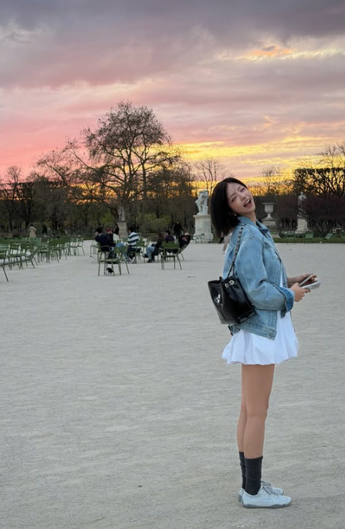 공개된 사진 속 김고은은 노을이 지는 파리의 한 공원에서 여유로운 시간을 보내고 있는 모습이다. 따뜻한 햇살과 어우러진 풍경 속에서 자연스러운 포즈를 취하며 감성적인 분위기를 자아낸다.