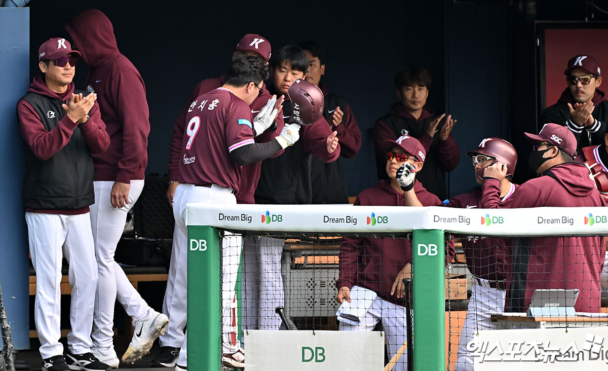 (엑스포츠뉴스 잠실, 김한준 기자) 24일 오후 서울 송파구 잠실야구장에서 열린 '2026 신한 SOL Bank KBO리그' 키움 히어로즈와 LG 트윈스의 시범경기, 1회초 무사 1루 키움 안치홍이 투런 홈런을 날린 후 기뻐하고 있다.