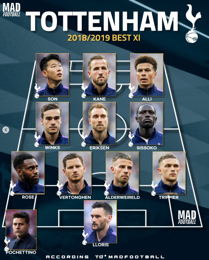 축구 콘텐츠 제작소 '매드풋볼'은 24일(한국시간) 공식 소셜미디어(SNS) 계정을 통해 토트넘이 UEFA 챔피언스리그 결승전에 올랐던 2018-2019시즌 당시 토트넘의 베스트 일레븐을 조명했다.