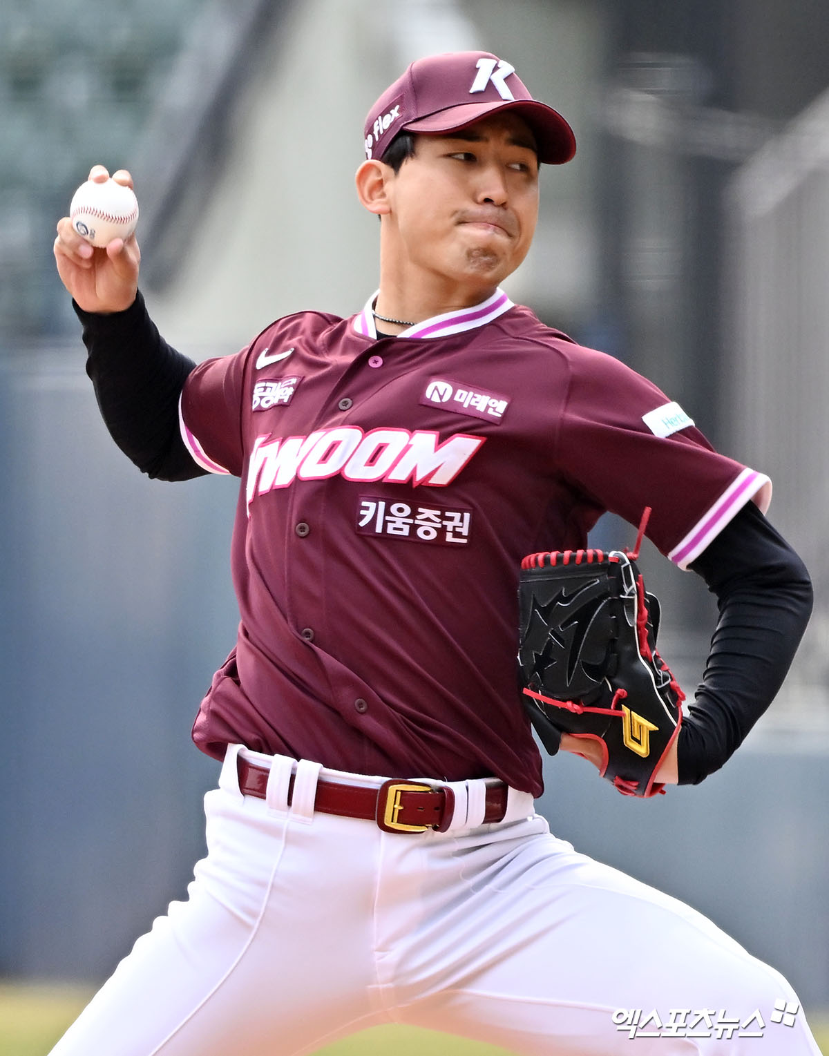 (엑스포츠뉴스 잠실, 김한준 기자) 24일 오후 서울 송파구 잠실야구장에서 열린 '2026 신한 SOL Bank KBO리그' 키움 히어로즈와 LG 트윈스의 시범경기, 8회말 키움 유토가 공을 힘차게 던지고 있다.