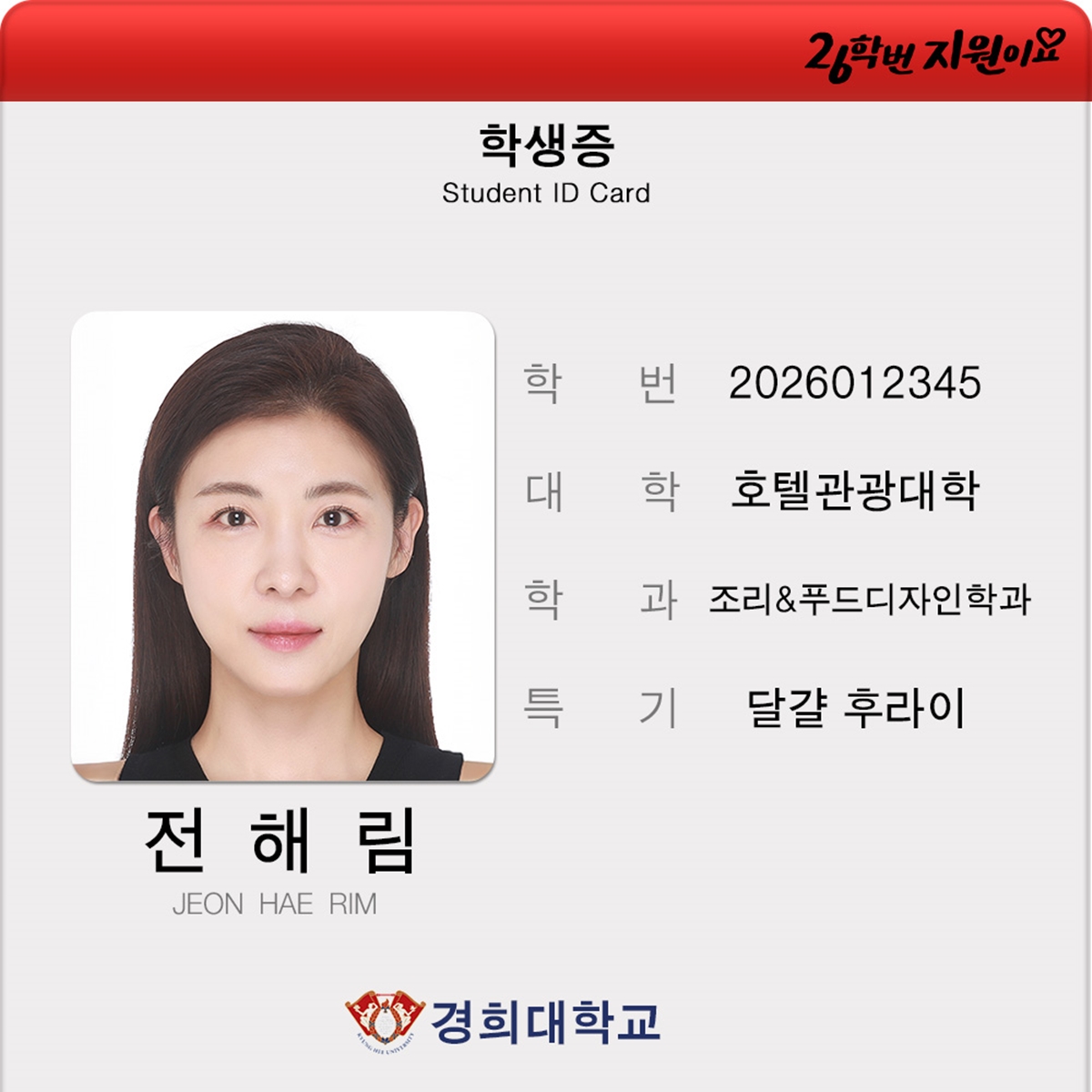 경희대학교의 조리&푸드디자인학과 새내기가 될 하지원, 그의 학생증 속 '달걀 후라이'라고 적혀 있는 특기칸 대목 또한 웃음을 자아낸다.