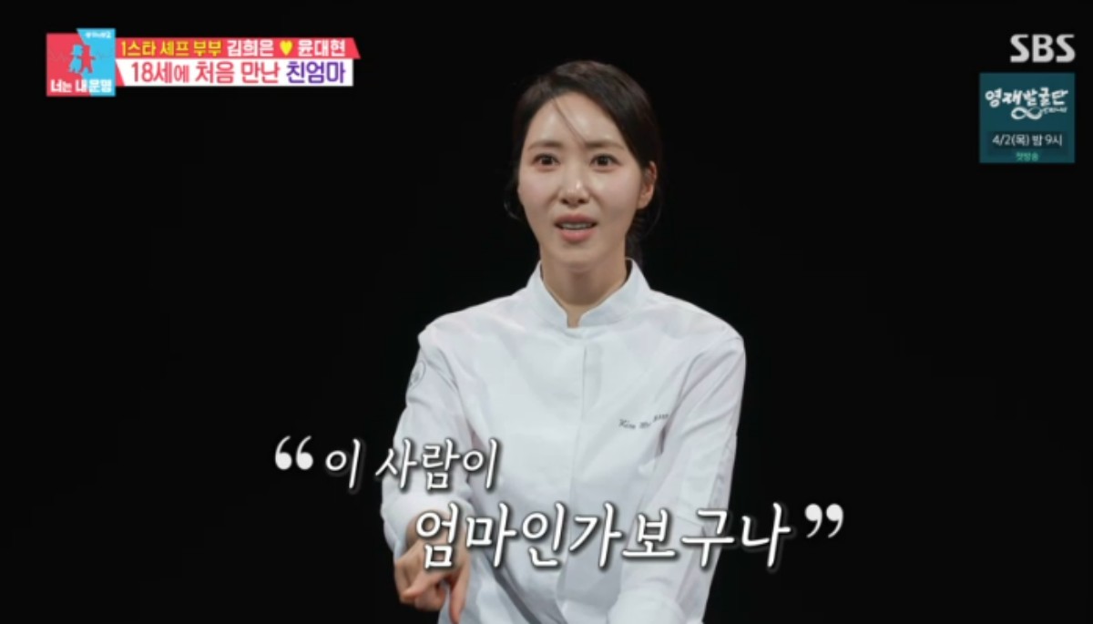 김희은은 "엄마랑 장보는 느낌은 뭘까? 엄마가 옷을 입혀주는 느낌은 뭘까? 엄마 냄새는 뭘까? 늘 궁금했다. 아직도 엄마 호칭이 어색하다"고 말해 마음을 짠하게 했다.
