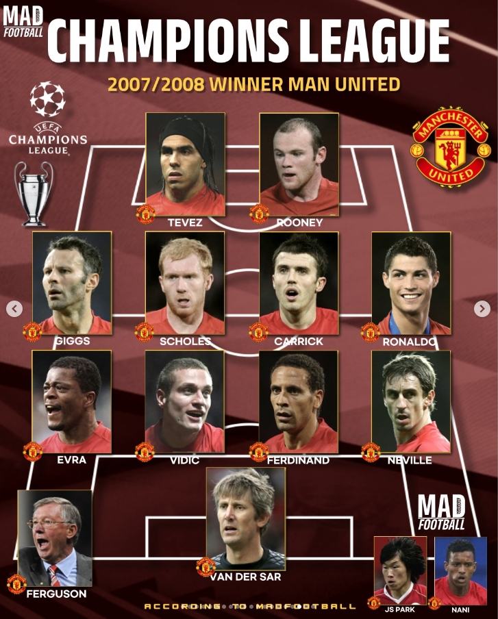 '매드풋볼'은 에드윈 판데르사르(골키퍼), 파트리스 에브라, 네마냐 비디치, 리오 퍼디난드, 게리 네빌(이상 수비수), 라이언 긱스, 폴 스콜스, 마이클 캐릭, 크리스티아누 호날두(이상 미드필더), 카를로스 테베즈, 웨인 루니(이상 공격수)가 당시 주전으로 불릴 만한 선수였다고 분류했다.