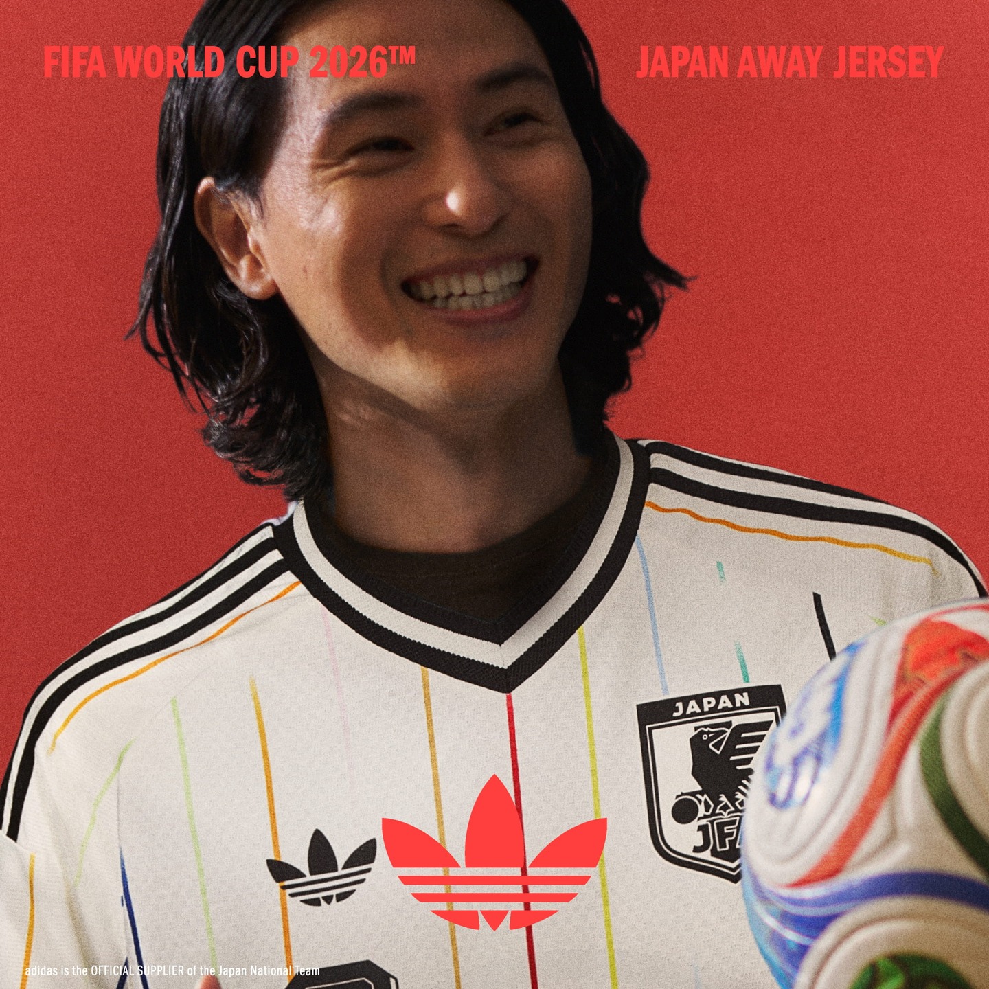 지난 20일 아디다스가 공개한 일본의 원정 유니폼은 하늘과 바다가 맞닿는 수평선을 모티프로 12가지 색상의 스트라이프 패턴을 통해 11명의 선수와 하나의 팬을 상징하는 대표팀의 정체성을 표현했다.
