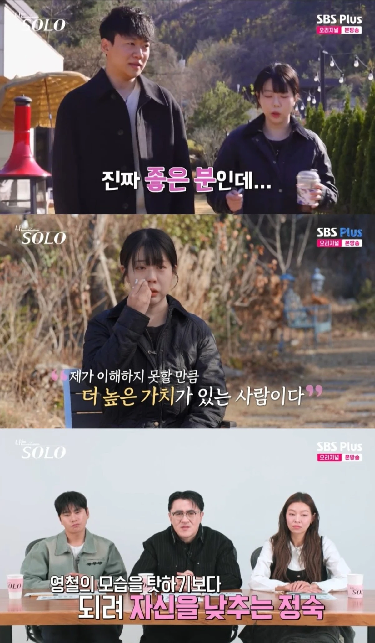 정숙은 "정말 진중한 사람이구나 싶었다. 제가 이해하지 못할 만큼 높은 가치가 있는 사람"이라며 영철의 모습을 탓하기보다 되려 자신을 낮췄다.