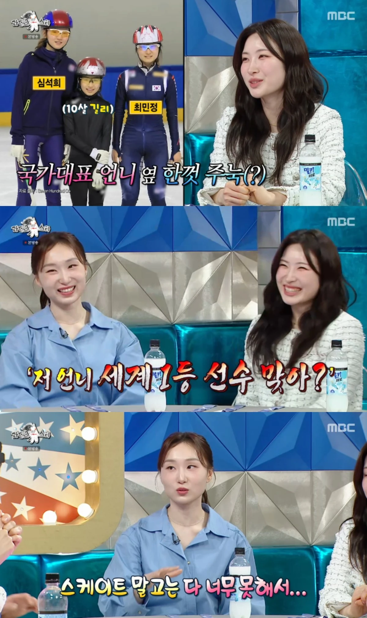 이에 최민정은 "스케이트 빼고 다 못 한다. 몸치다. 스케이트 탈 때랑 아닐 때랑 갭 차이가 커서 후배들도 많이 놀린다"고 말해 웃음을 줬다.