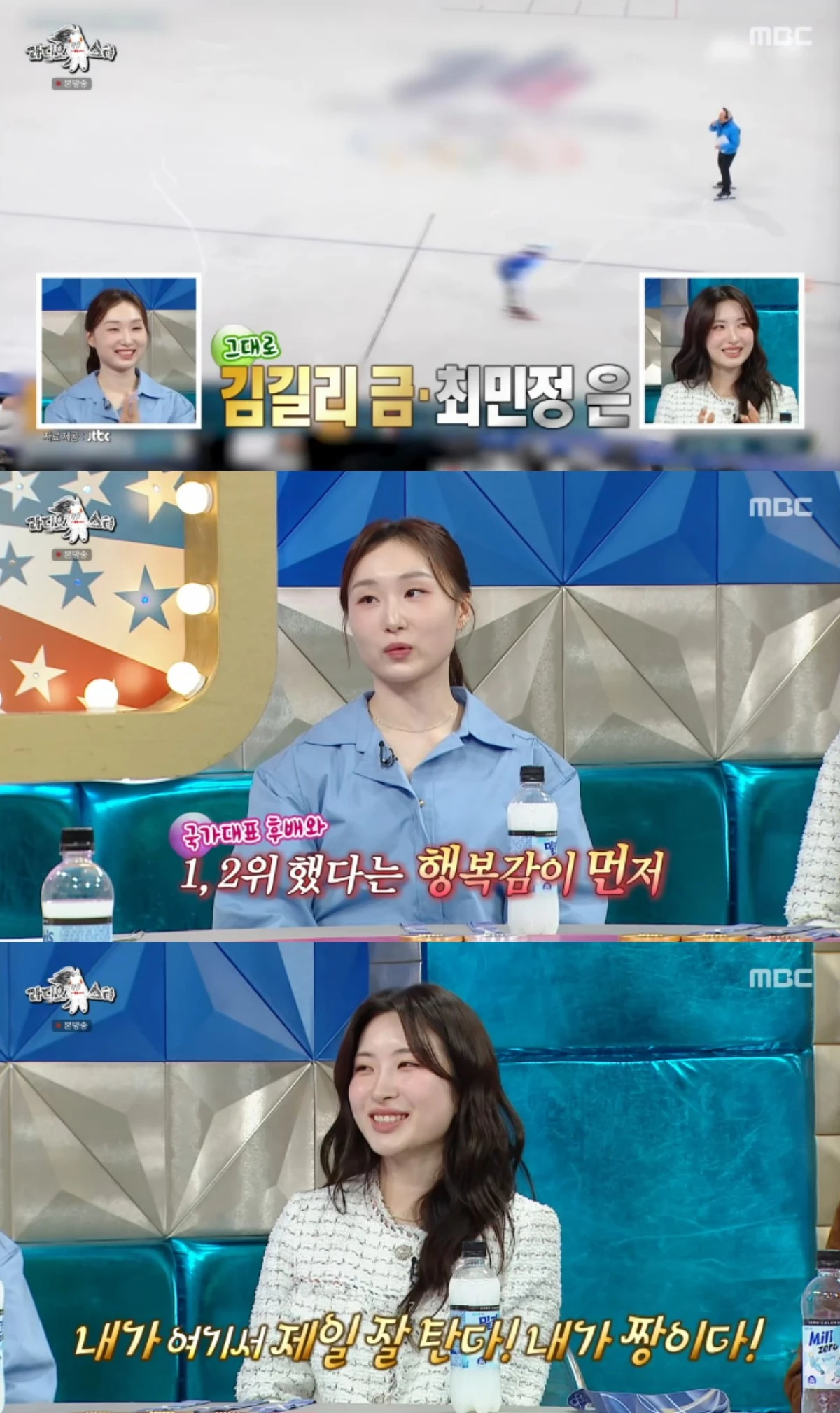 이날 방송에서 '라디오스타' MC들은 최민정과 김길리에게 "1500m에서 아름다운 경쟁을 했다"고 나란히 금메달과 은메달을 딴 것을 전했다.